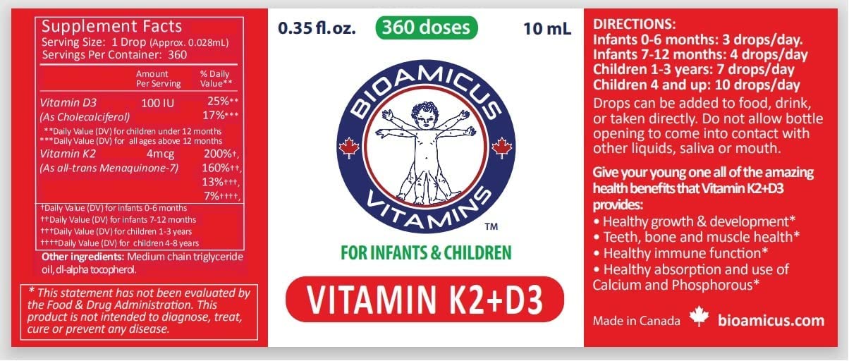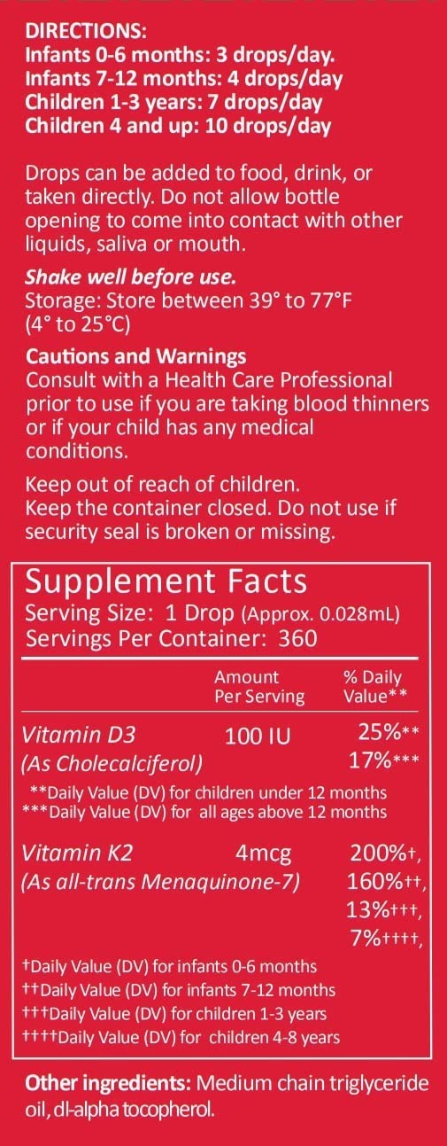 Premium Vitamin K2 and Vitamin D3 in easy to use liquid drop form 4 mcg of vitamin K2 per drop. Sourced from all-trans Menaquinone-7 (MK-7), the most natural, pure, and fully bioactive form of K2. 100 IU of Vitamin D3 per drop. Naturally sourced from sheep wool. Vitamin K2 and Vitamin D3 are natural partners, with synergistic effects when taken together.