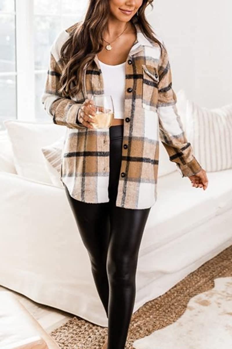 Blansdi Women’s Casual Plaid Flannel Shacket Jacket Oversized Button Down Long Sleeve Fall Shirt Jacket Coat Tops