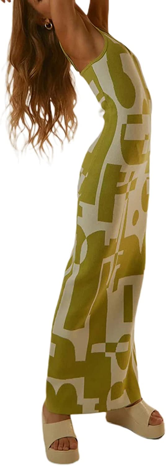 Bodycon Dresses for Women Summer Knit Hollow Out Sexy Night Out  Midi Maxi Dress Sleeveless Long Cut Out Dress