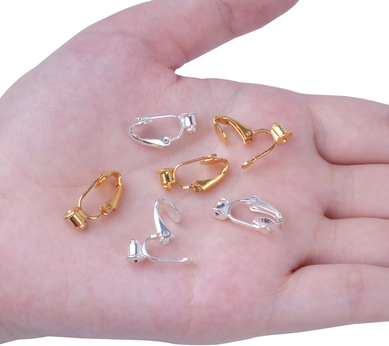 BronaGrand 20 Pieces Earring Clip Backs Clip-on Earring Converter Components Findings with Post for None Pierced Ears, Silver and Gold