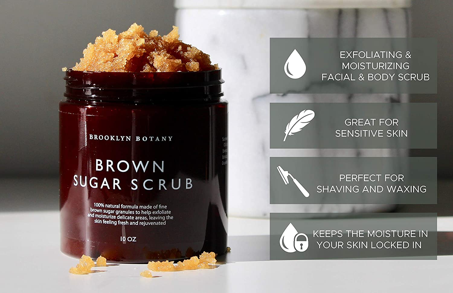 Brooklyn Botany Brown Sugar Body Scrub - 10 oz - Moisturizing and Exfoliating Body, Face, Hand, Foot Scrub - Fights Acne Scars, Stretch Marks, Fine Lines & Wrinkles, Great Gifts For Women & Men - 10 o