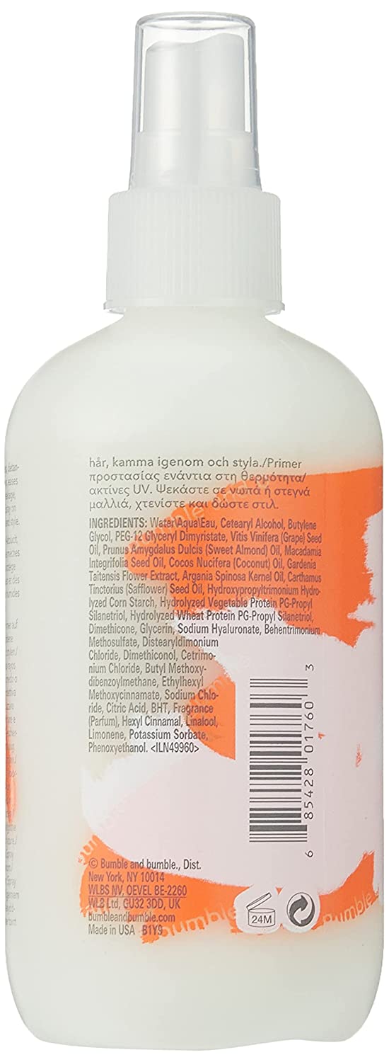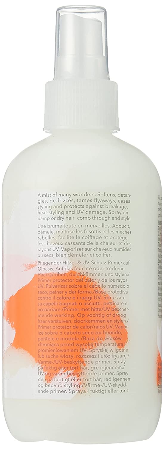 A pre-style that protects, conditions, and eases styling for dry, brittle, or coarse hair. This multitasking primer is infused with six different feather-light oils for complete hair transformation. It has been shown to make hair softer, smoother, silkier, and less tangled as it tames frizz and protects against breakage from heat and up radiation-all without weighing hair down. It also features a pleasant scent with sweet, fruity hints and tropical touches.