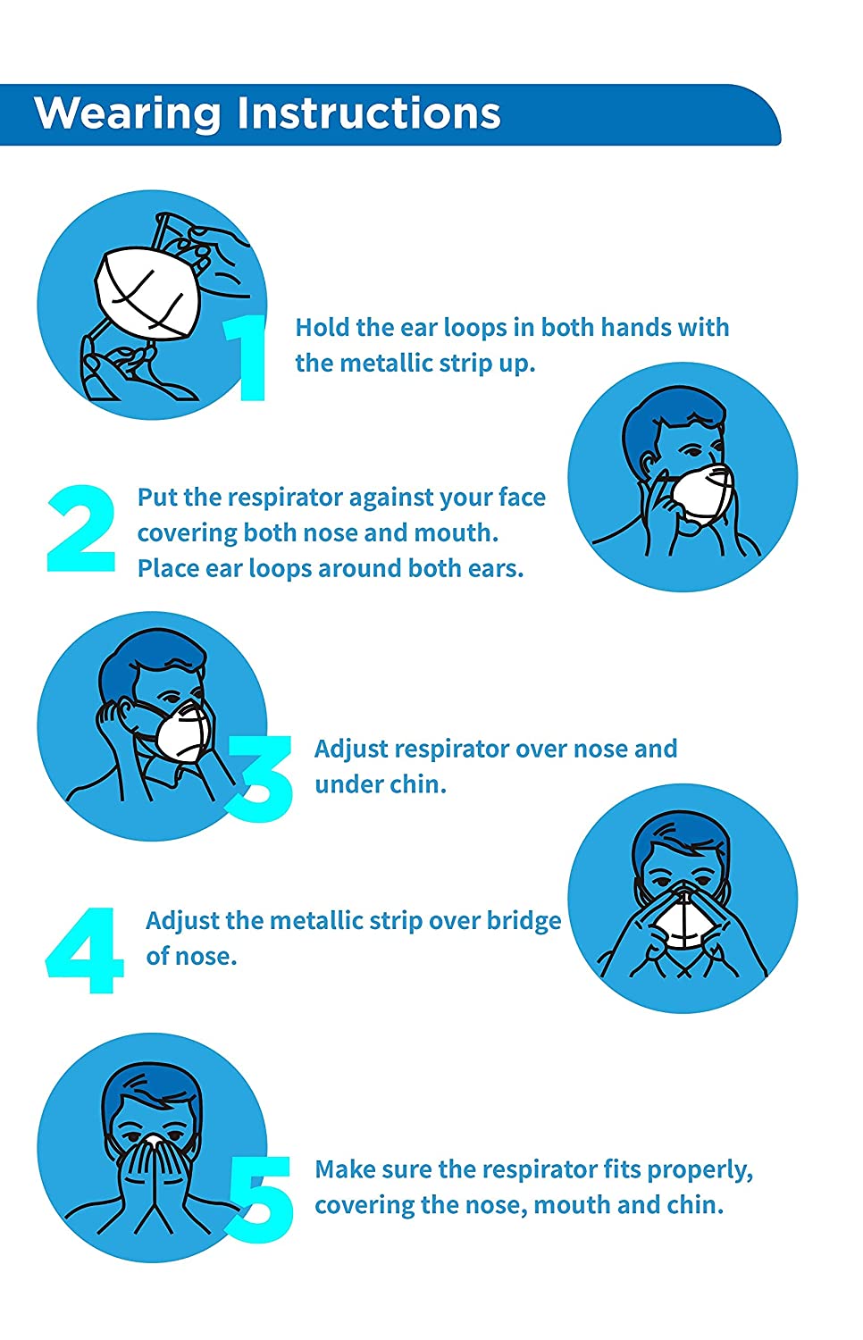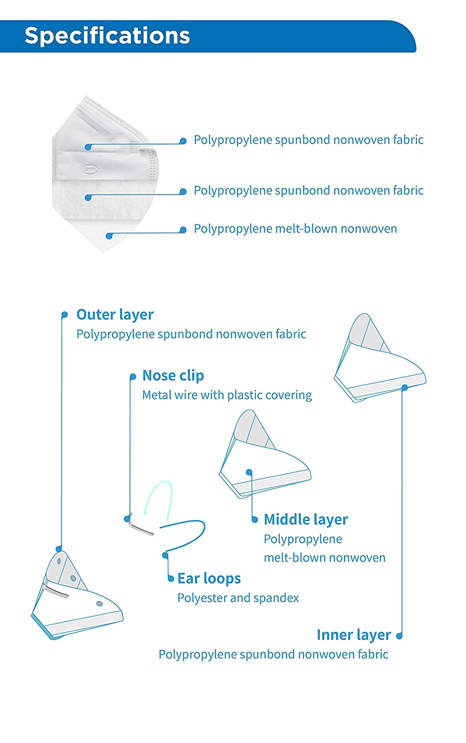 BYD CARE KN95 Respirator, 50 Pieces, Breathable & Comfortable Foldable Safety Mask with Ear Loop for Tight Fit, GB2626 White , Regular