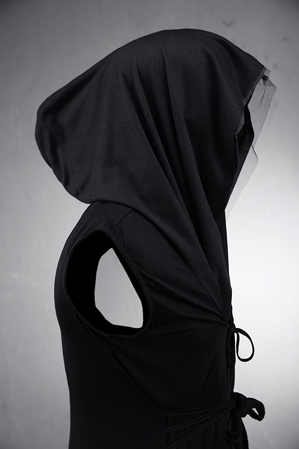 ByTheR Cloak with Hood Mens Sleeveless Mesh Layered Cut Off Open Vest Dark Goth Cardigan Black