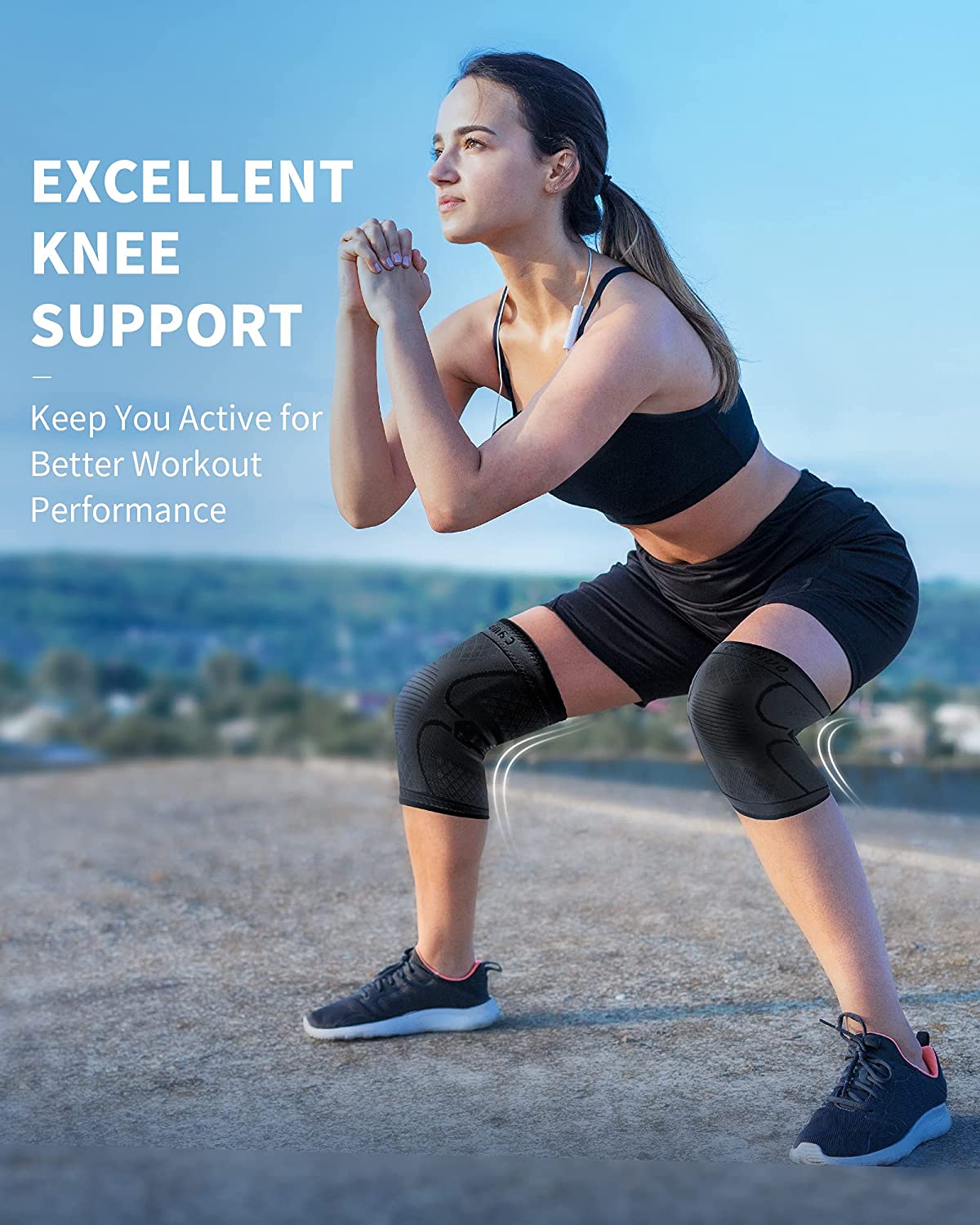 CAMBIVO 2 Pack Knee Brace, Knee Compression Sleeve Support for Men and Women, Knee Pads for Running, Hiking, Meniscus Tear, Arthritis, Joint Pain Relief