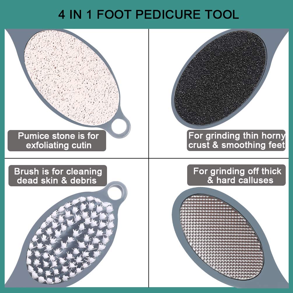 CAREHOOD Foot File Callus Remover - Multi Purpose 4 in 1 Feet Pedicure Tools with Foot Scrubber, Pumice Stone, Foot Rasp and Sand Paper for Home Foot Care (Grey Pedicure Foot File)