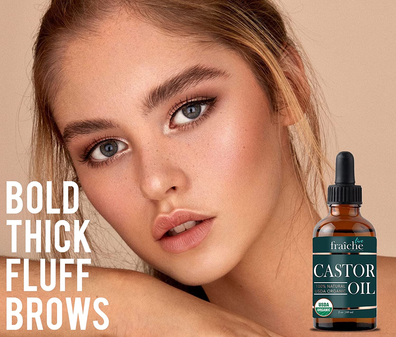 Castor Oil (2oz) + Filled Mascara Tube USDA Certified Organic, 100% Pure, Cold Pressed, Hexane Free by Live Fraiche. Stimulate Growth for Eyelashes, Eyebrows, Hair. Lash Growth Serum. Brow Treatment