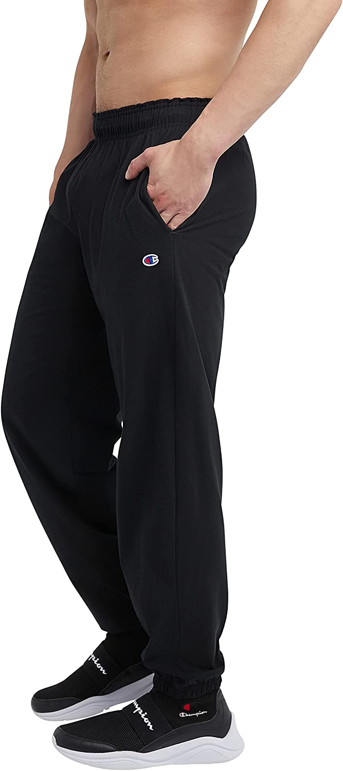 Versatility in your weekend wardrobe is a quality to be treasured. Here are pants that are all about versatile comfort to wear just about anywhere for just about anything. For warming up, cooling down, working out, running errands, or doing nothing at all, you won't find an easier, more comfortable knit pant. Designed for ease, these relaxed exercise pants are knit of US-grown cotton, with a comfortable elasticized waistband with an inner drawcord for a custom fit. Handy side pockets keep your keys or ID safe. The relaxed silhouette with a 31.5" inseam finishes with neat elasticized cuffs that won't get in your way for running, biking, or using equipment at the gym. These everyday jersey pants proudly display the brand's iconic "C" logo appliqué on the left hip.