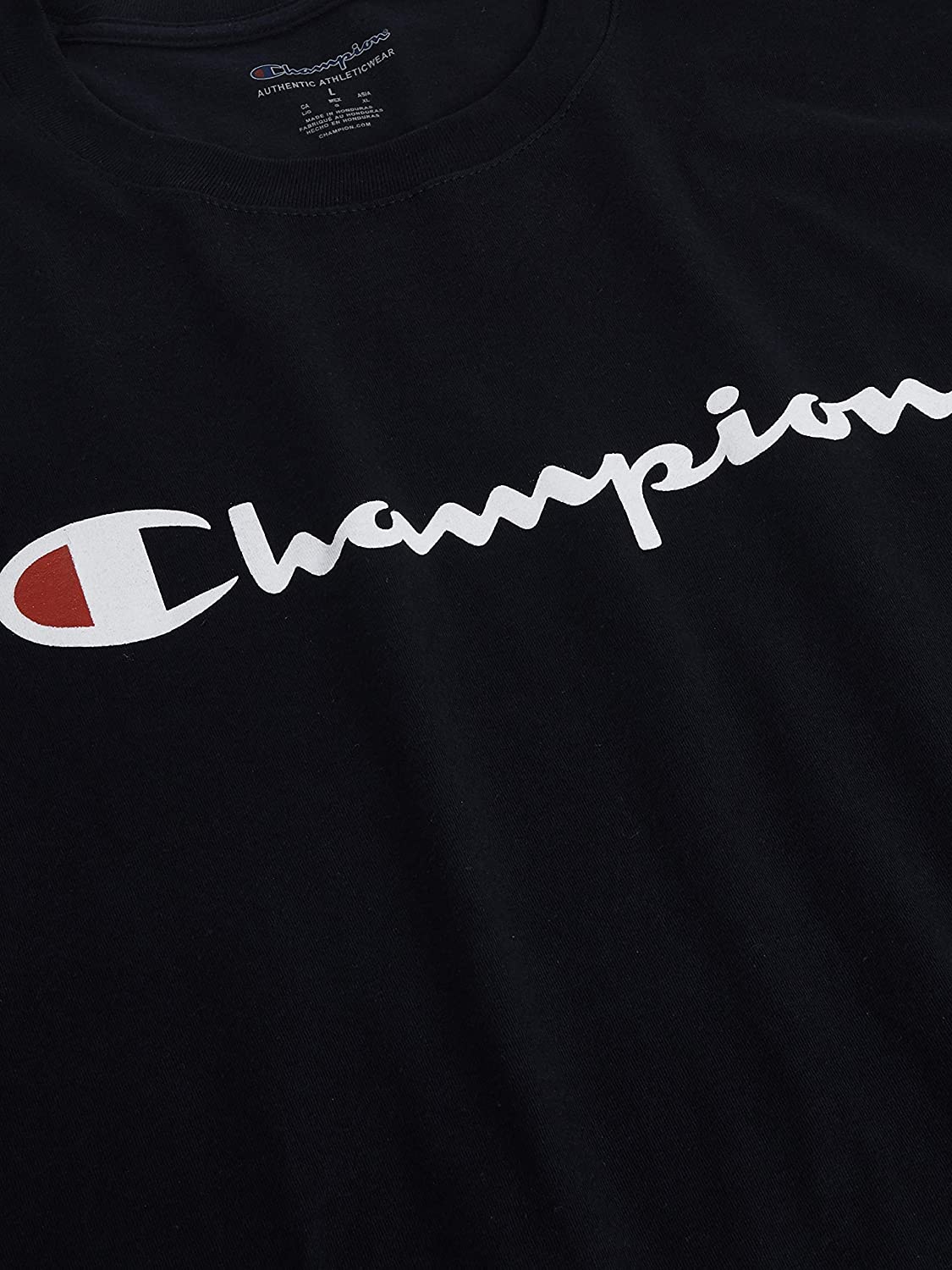 Here’s a go-to classic cotton tee from Champion®, with Champion® quality built into every detail. This classic crewneck T-shirt is made of traceable, US-grown, ringspun cotton, produced using 2 to 5 times less water while yielding an ultra-soft feel. And it’s constructed with a higher stitch count and reinforced shoulder seams for superb durability. The ribbed crewneck looks great and helps hold the shape, with tonal back neck tape for no-chafe comfort. Wear this basic cotton crewneck tee on its own or as a layer, and enjoy its quality for a long, long time.