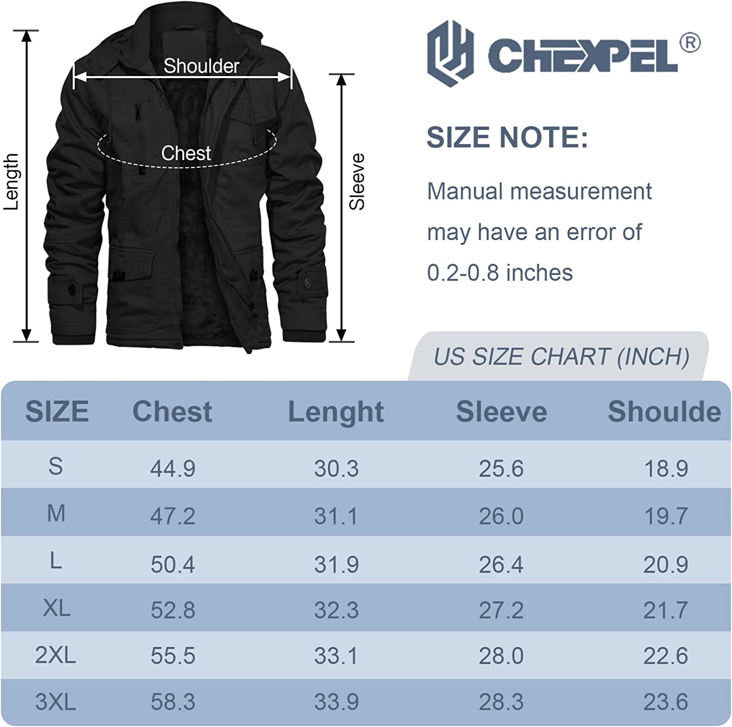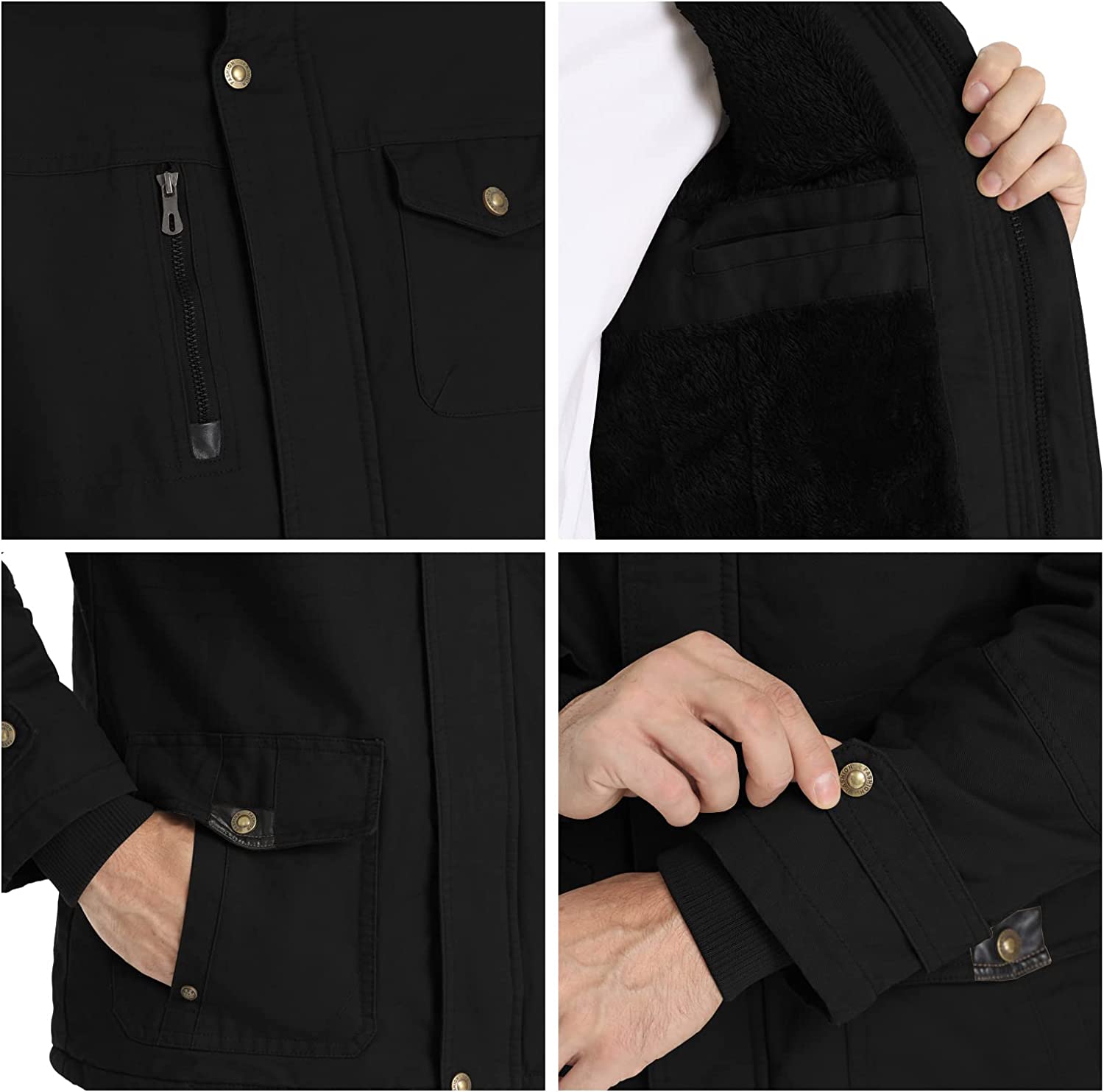 CHEXPEL Men's Thick Winter Jackets with Hood Fleece Lining Cotton Military Jackets Work Jackets with Cargo Pockets