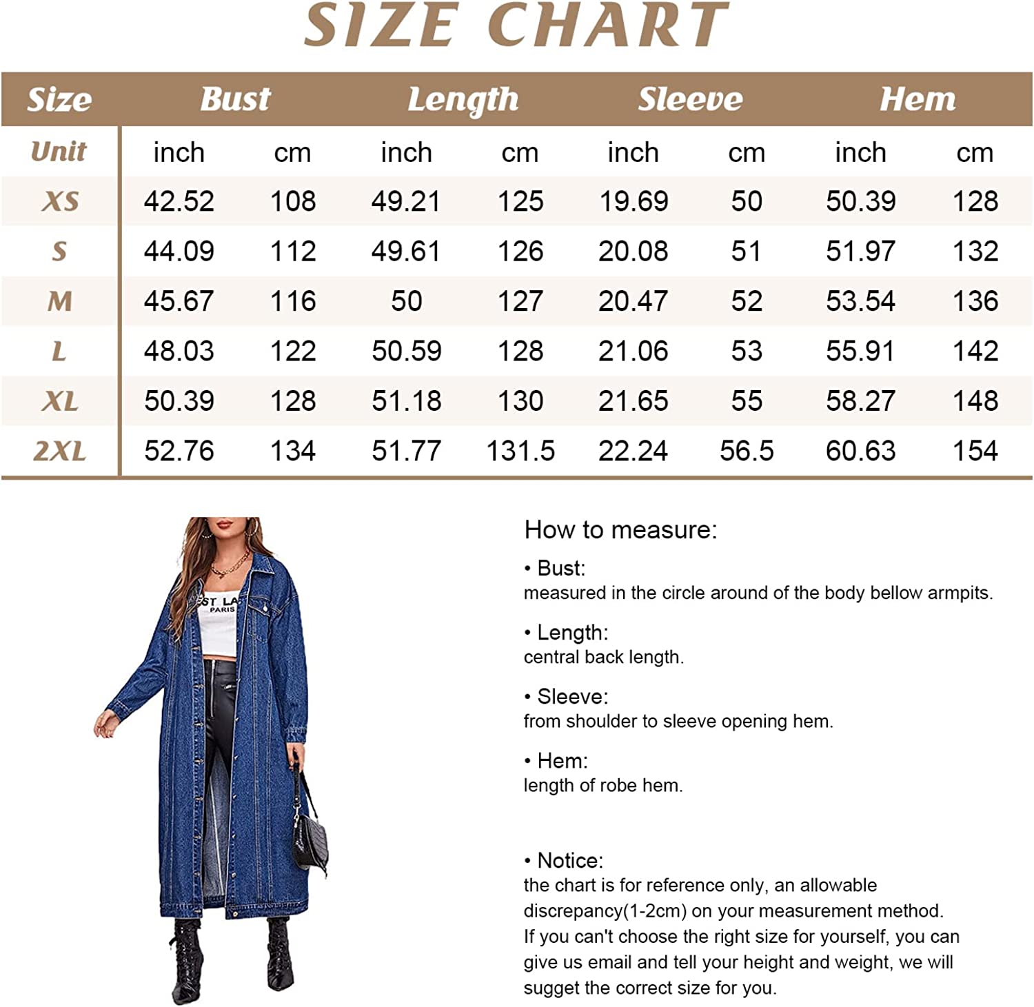 chouyatou Women's Fashion Spring Button Down Midi Long Denim Jean Jacket Trench Coat