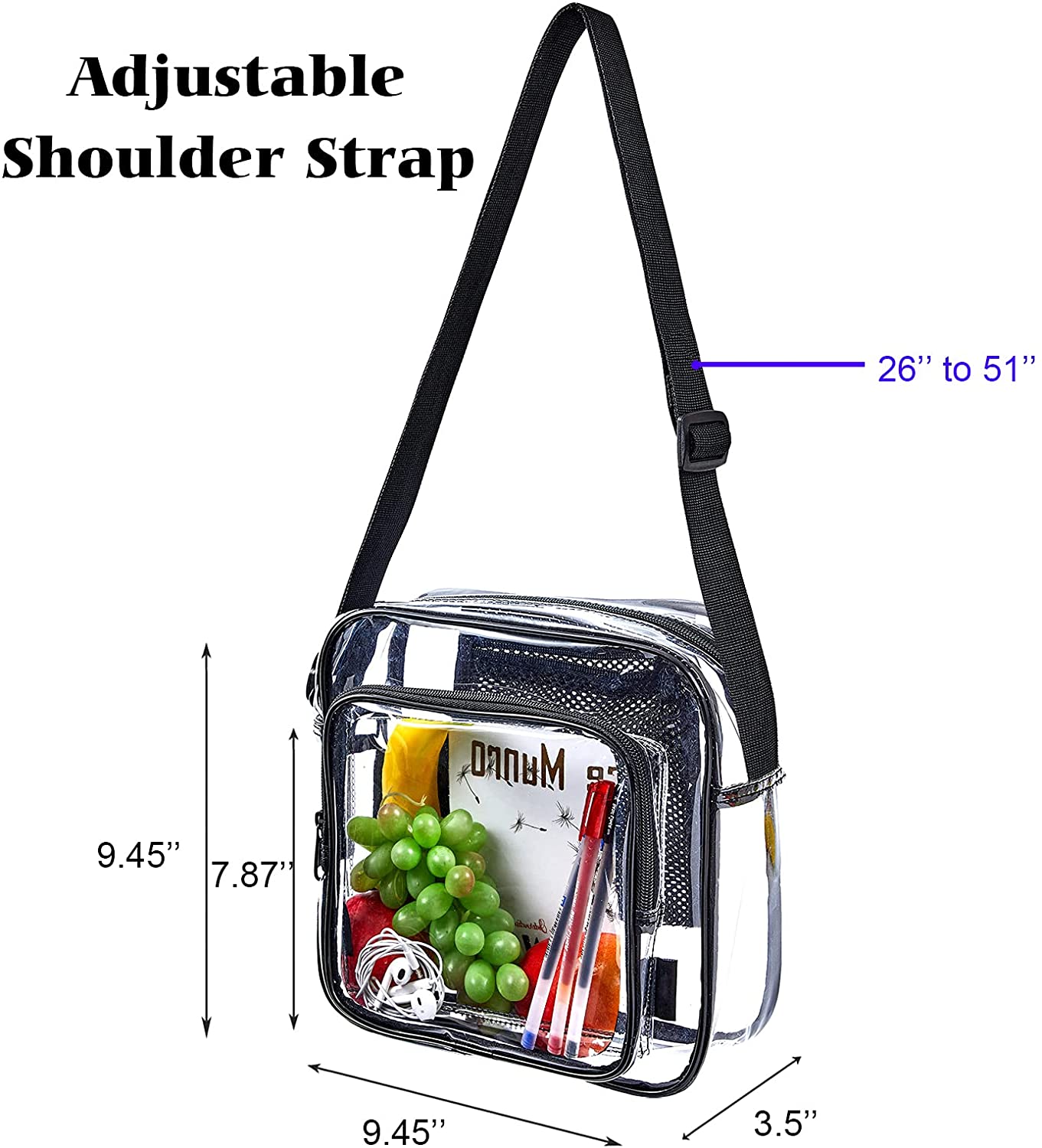 Clear Crossbody Bag Stadium Approved, Clear Messenger Shoulder Bag with Adjustable Strap for Work, Concerts, Sports Events