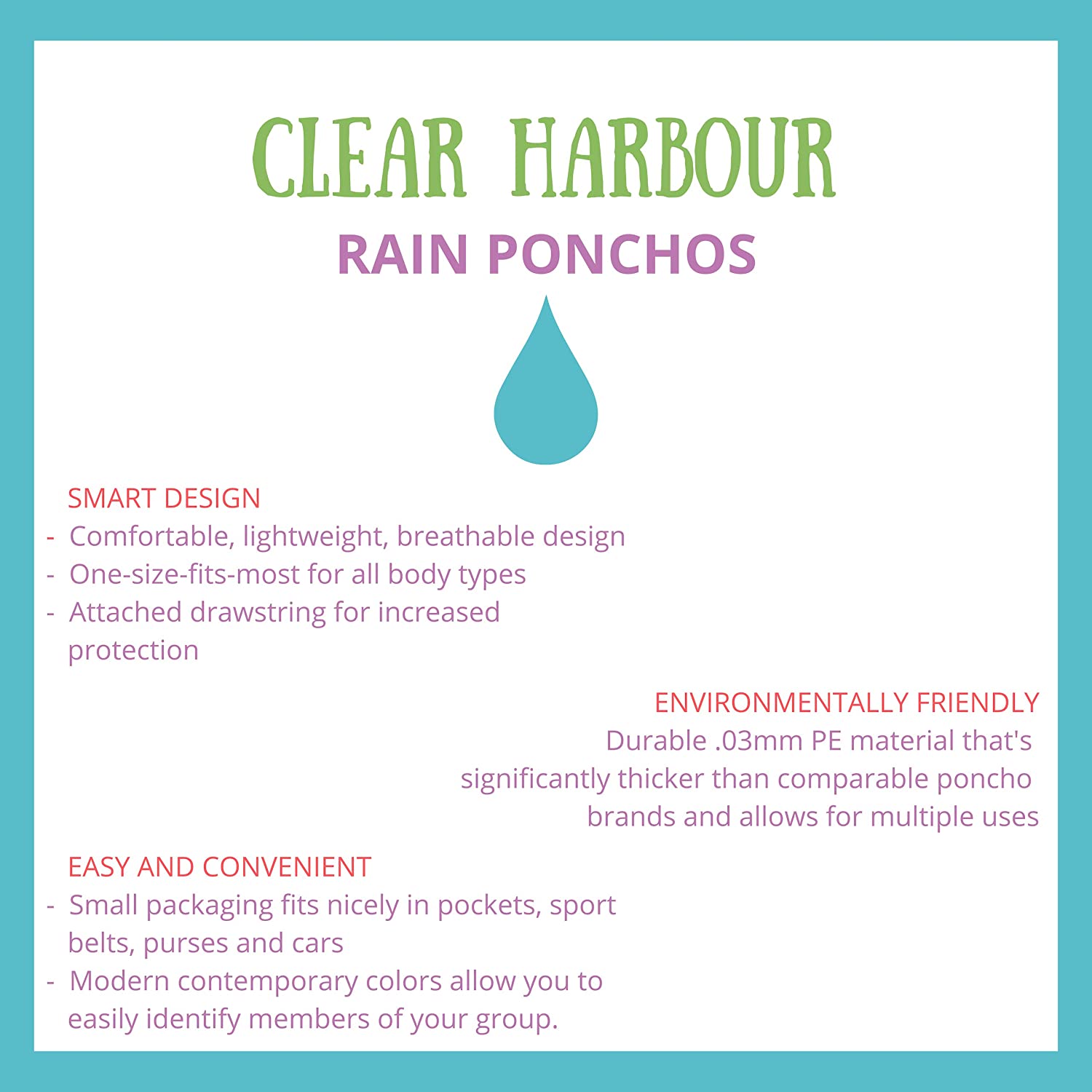 Clear Harbour Emergency Disposable Rain Poncho Pack for Adults | Women and Men's Rain Ponchos in Bulk | Extra Thick, Waterproof Reusable .03mm PE Plastic Material for Travel, Survival, and Fun.
