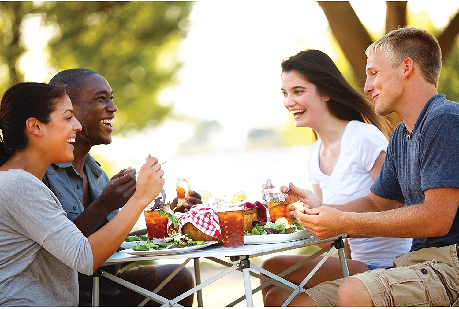 Play cards or enjoy a meal at the campsite on the Coleman Compact Roll-Top Aluminum Table. This ultra-portable table also works well as a hydration station at a kids' ball game.