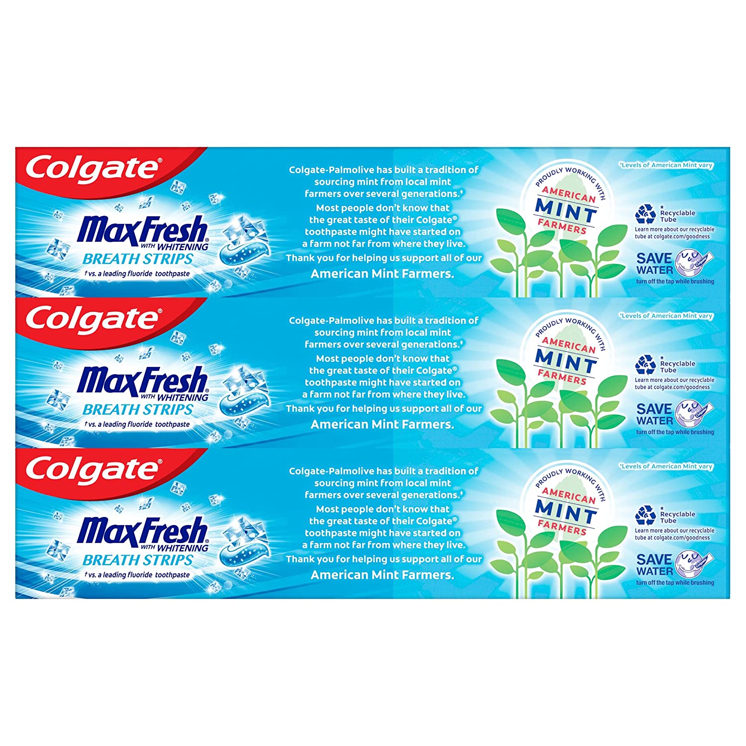 Colgate Max Fresh with Whitening Toothpaste has 10X longer lasting cool*, so you can breathe confidently. This breath freshening toothpaste has a unique toothpaste formula that is packed with hundreds of mini breath strips and unleashes a powerful rush of freshness for long-lasting fresh breath. *vs a leading fluoride toothpaste