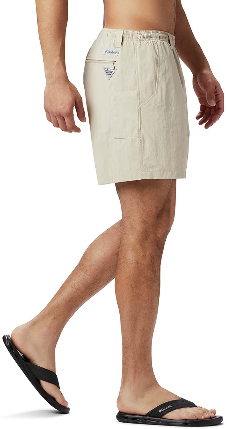 Columbia Men's Size Chart With quick-dry performance and easy, throw-on fit, the Backcast III™ Water Short transitions from swim trunk to fishing piece whenever the mood strikes you. The Performance Fishing Gear™ (PFG) collection is specifically designed for mobility and protection with the angler in mind. Nylon poplin:• Lightweight, textured nylon weave offers quick-dry performance.• Omni-Shade™ UPF 50 fabrication protects your skin during outdoor activity by blocking harmful Ultraviolet A and Ultraviolet B rays (UVA and UVB). Elastic, belt-loop waistband with inner drawstring. Slash hand pockets. Back zip pocket. Mesh brief lining. PFG patches set at the back. 100% nylon;Lining: 100% polyester. Machine wash and tumble dry. Imported. Measurements: Waist Measurement: 32 in Outseam: 18 in Inseam: 8 in Front Rise: 12 in Back Rise: 17 in Leg Opening: 28 in Product measurements were taken using size MD, inseam 8. Please note that measurements may vary by size. If you're not fully satisfied with your purchase, you are welcome to return any unworn and unwashed items with tags intact and original packaging included.