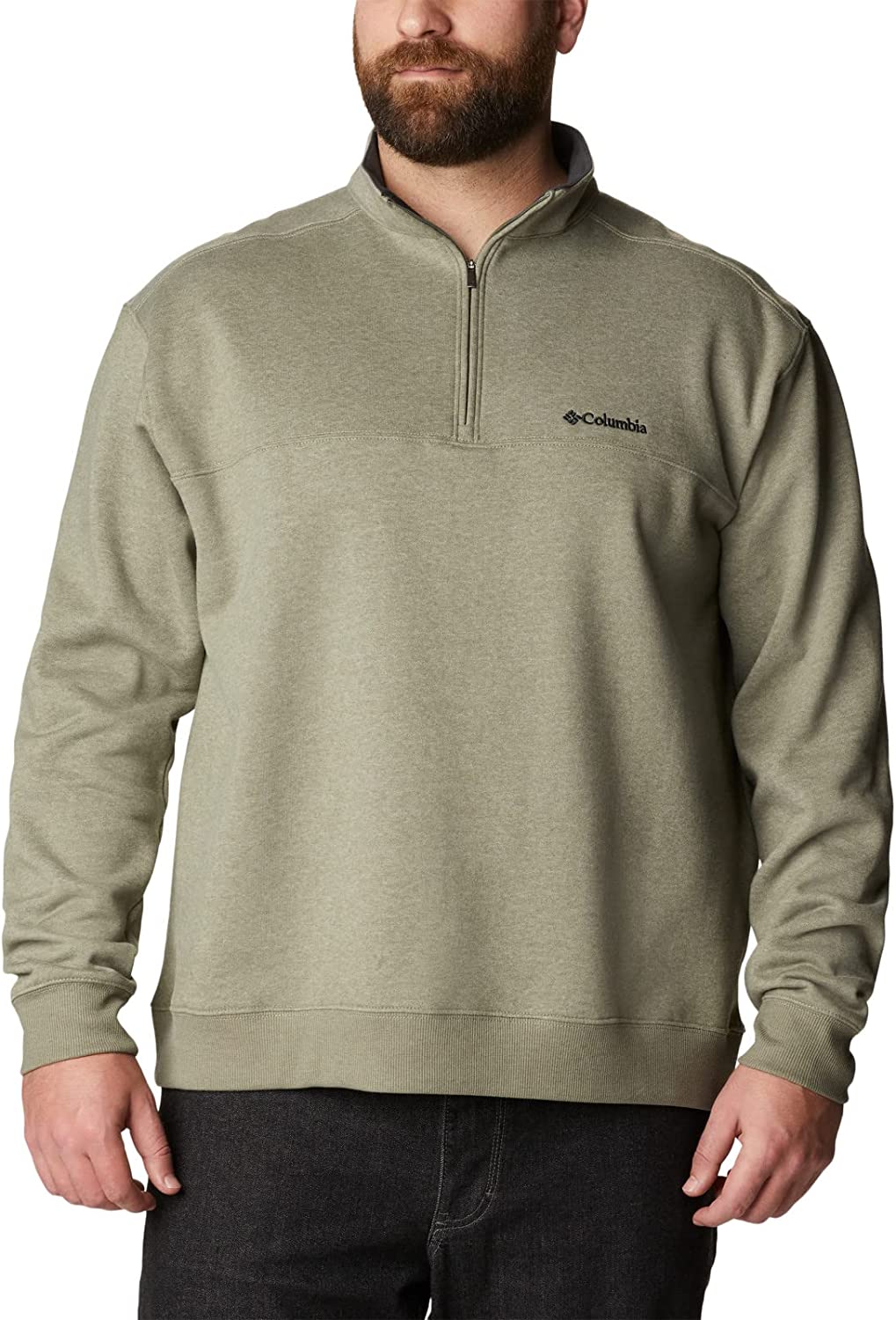 Clean and simple, this sueded fleece pullover is just the thing to keep you warm, comfortable, and in style all season long. The Columbia Men’s Hart Mountain II Half Zip Pullover is a cozy fleece layer made from plush cotton blend with a regular cut silhouette. This layer is a must for any fall or winter wardrobe and can be worn on its own for cool chilly days, or as mid layer with an outer shell for the ultimate in cold weather protection. It is a chilly-day staple perfect everyday style and warmth. You're bound to be just right in this flexible half zip pullover, a jacket crafted from a super-soft 60% cotton, 40% polyester blend. It's the perfect layering piece and first line of defense to combat the cold, and as an added bonus, the full collar is flexible enough to wear up or down, depending on your desired level of toastiness. Columbia offers this pullover in a wide range of colors and sizes. Available in extended sizing. Regular Fit. To ensure the size you choose is right, utilize our sizing chart and the following measurement instructions: For the sleeves, start at the center back of your neck and measure across the shoulder and down to the sleeve. If you come up with a partial number, round up to the next even number. For the chest, measure at the fullest part of the chest, under the armpits and over the shoulder blades, keeping the tape measure firm and level.