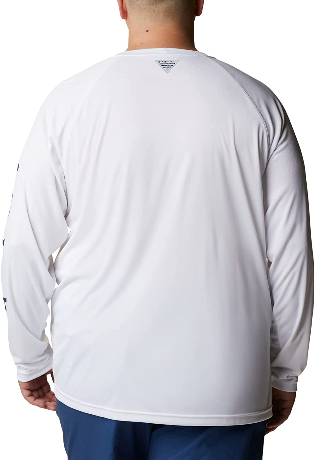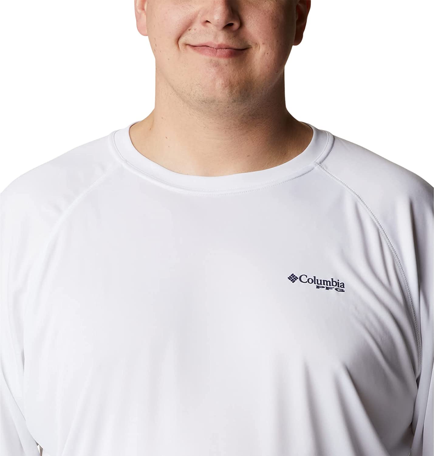 The polyester interlock construction of our PFG Terminal Tackle Long Sleeve Shirt offers full coverage against harmful midday sun with UPF 50 protection. It’s also lightweight and quick drying, making it the perfect solution for staying cool while protecting your skin out over any highly reflective water. It’s the ultimate day-out-on-the-boat staple… lightweight, durable, go-to gear. This technology featured long sleeve Tee is necessity for any day out on the ocean, lake, or river. Made up of a combination of Columbia’s signature protection fabrics: UPF 50 works to block and shield you from harmful UVA and UVB sun rays known to cause skin damage, while the advanced wicking fabric works to pull moisture and water away from the skin. You remain cool while our signature PFG logo runs along the sleeve. Columbia offers this fishing shirt in multiple staple colors and sizes. Available in extended sizing. Regular Fit. To ensure the size you choose is right, utilize our sizing chart and the following measurement instructions: For the sleeves, start at the center back of your neck and measure across the shoulder and down to the sleeve. If you come up with a partial number, round up to the next even number. For the chest, measure at the fullest part of the chest, under the armpits and over the shoulder blades, keeping the tape measure firm and level.