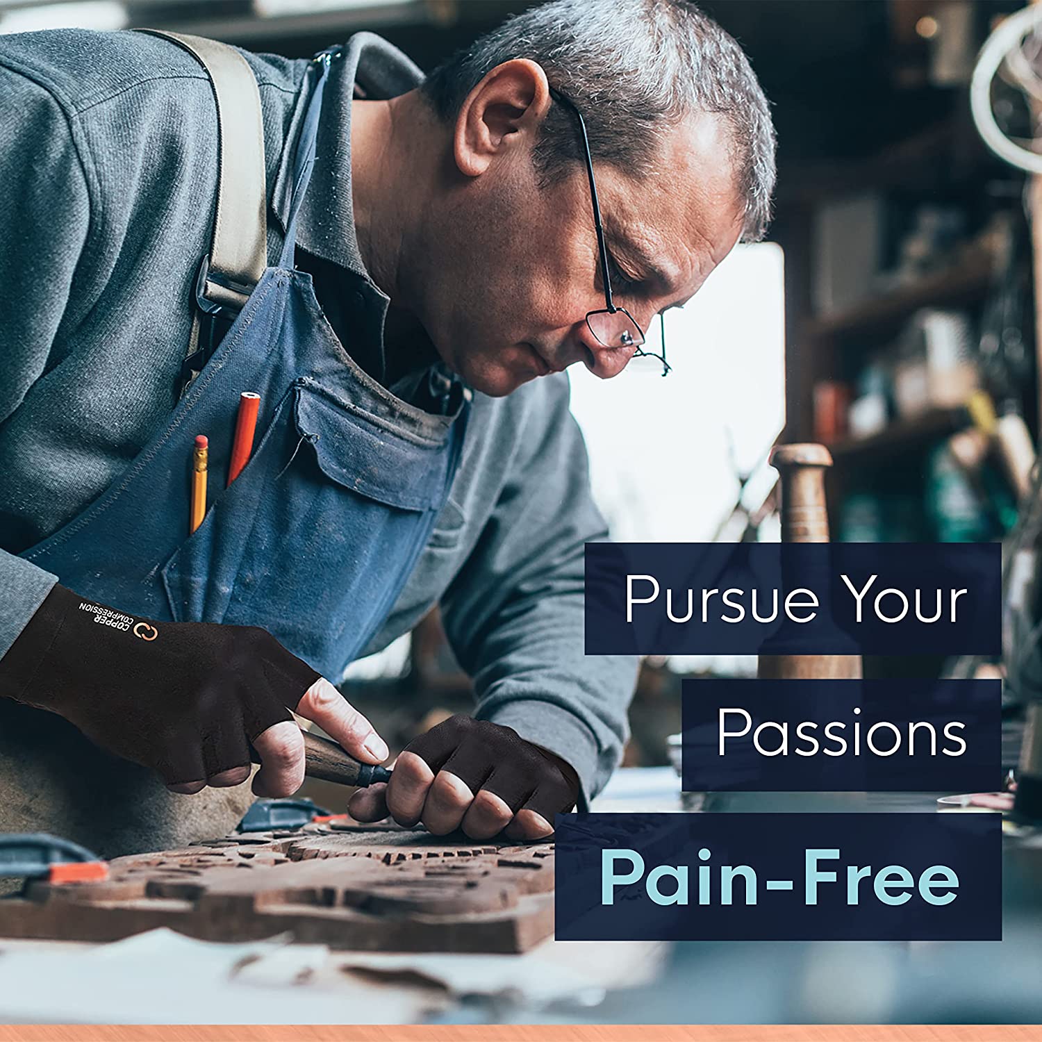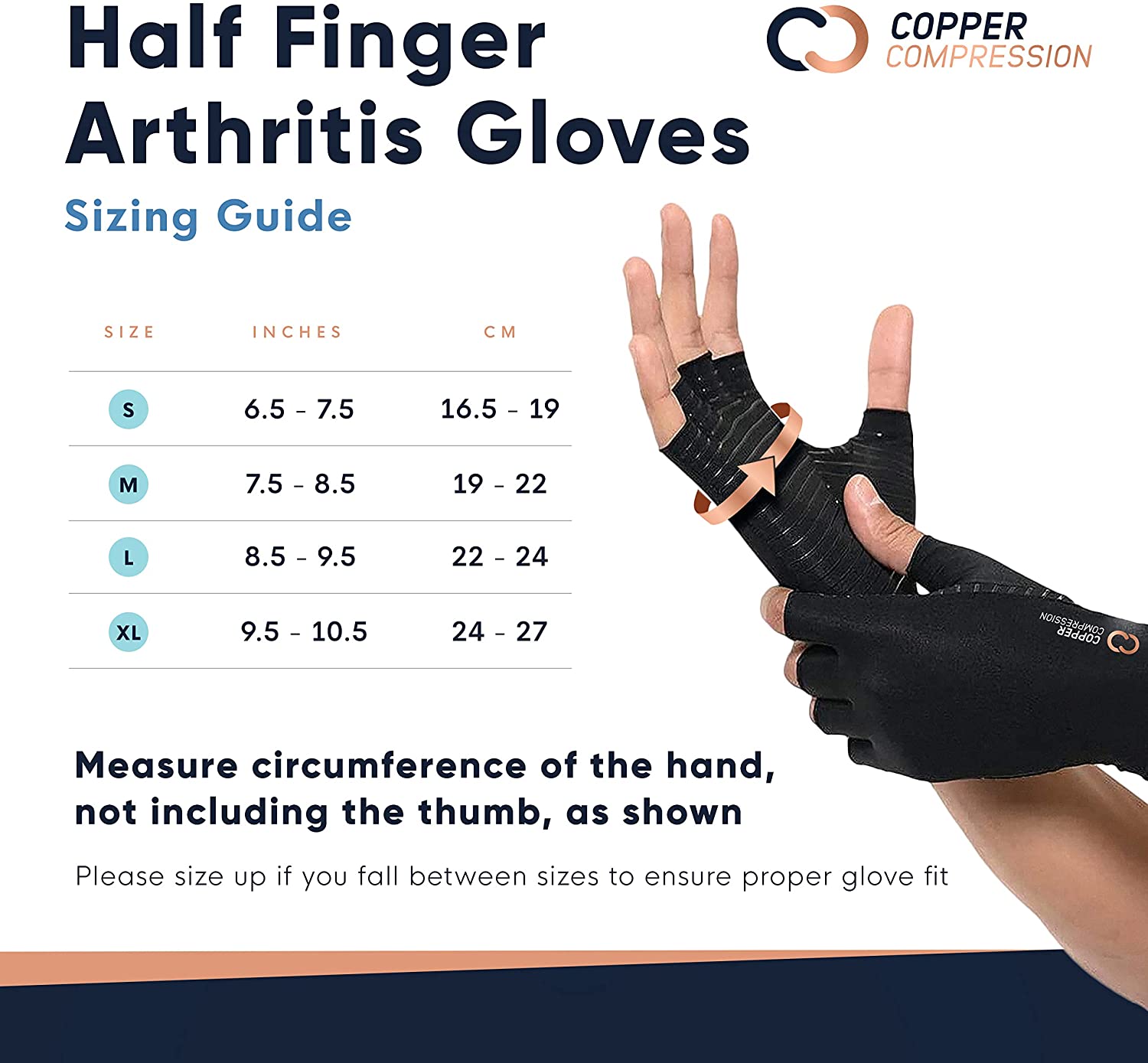 Copper Compression Arthritis Gloves - Best Copper Infused Fingerless Glove for Carpal Tunnel, RSI, Rheumatoid , Tendonitis, Hand Pain, Computer Typing, Support for Hands. Fit for Women & Men - 1 Pair