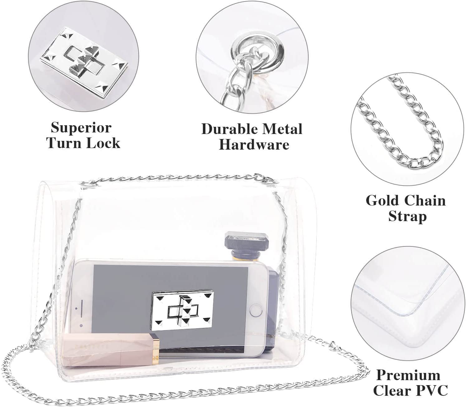 - Clear purse with fashion gold-tone or silver-tone hardware, stylish and trendy
