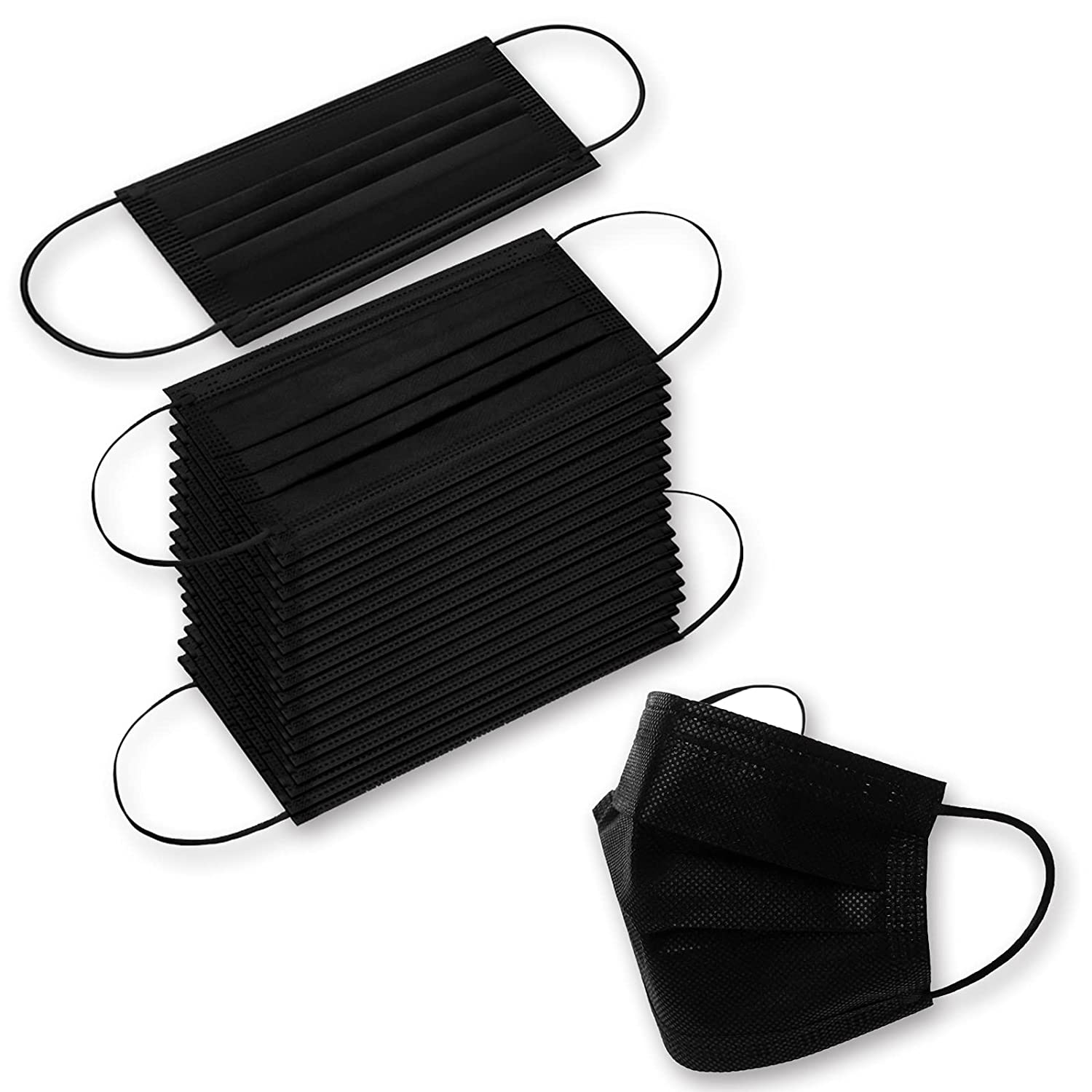 Disposable Face Masks 100PCS Black Face Mask 3 Layer Protection Face Mask with Adjustable Ear Loops