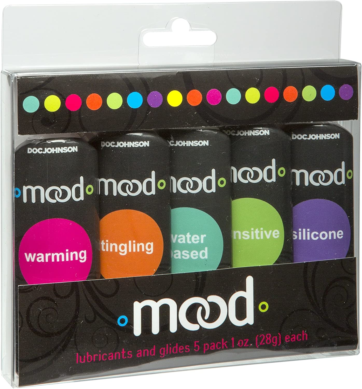 Doc Johnson Mood - Lube & Glide Sample Pack - Silicone Lube, Warming Glide, Tingling Glide, Water-Based Lube, Sensitive Glide - 5 x 1 fl.oz. (5 X 29.5 ml)