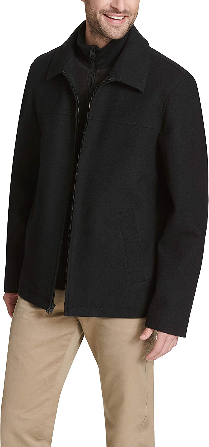 Dockers Men's Wool Blend Open Bottom Jacket with Quilted Bib