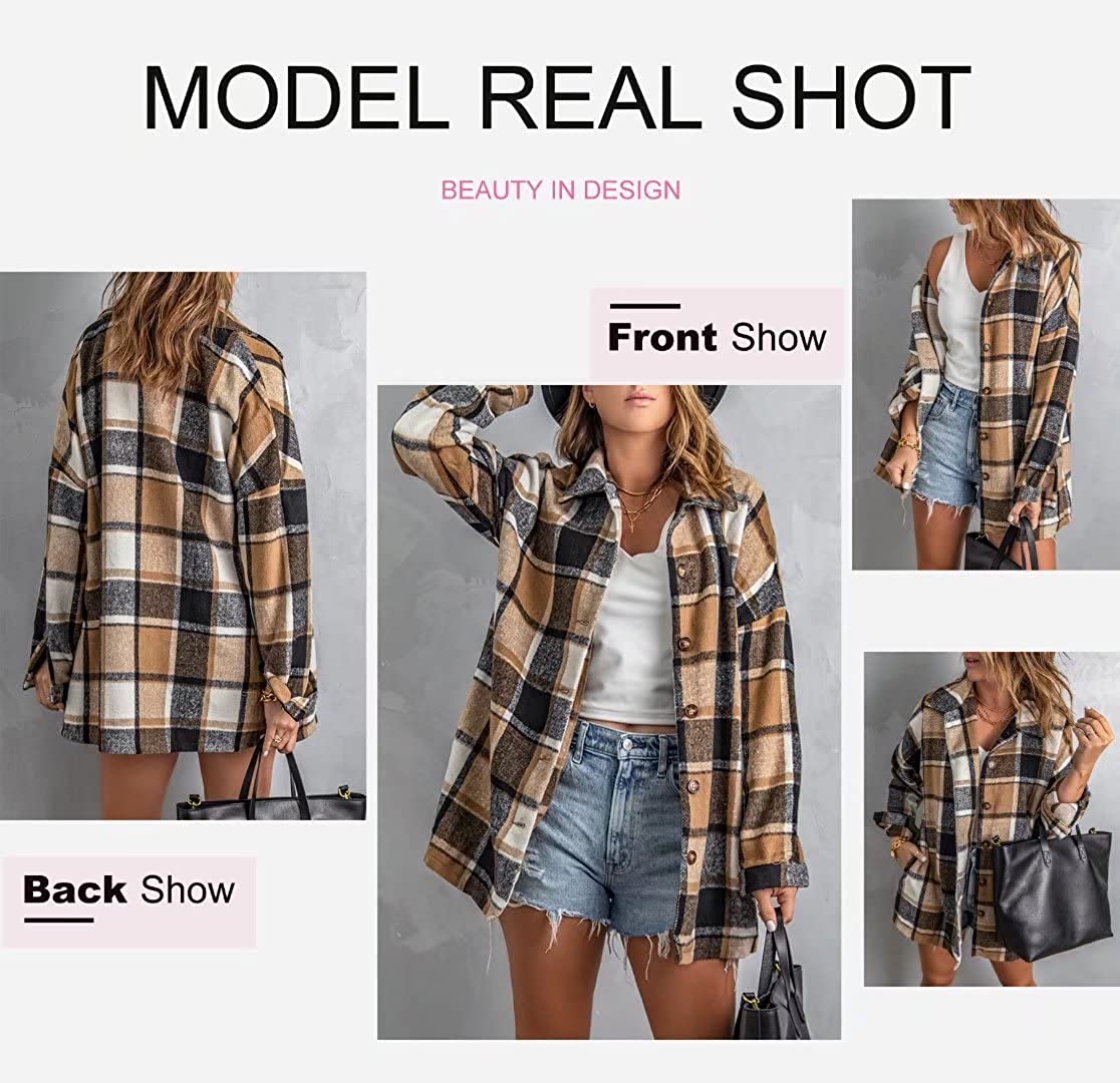 Dokotoo Women's 2021 Fashion Plaid Button Down Lapel Collar Shacket Jacket Coat Outerwear