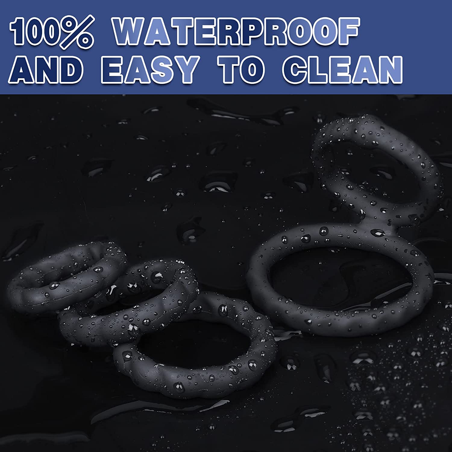 Dovelo Silicone Penis Rings 4 Piece Set, 3 Individual Ring Penis Rings in Different Sizes, 1 Dual Ring, Men's Advanced Training Penis Ring