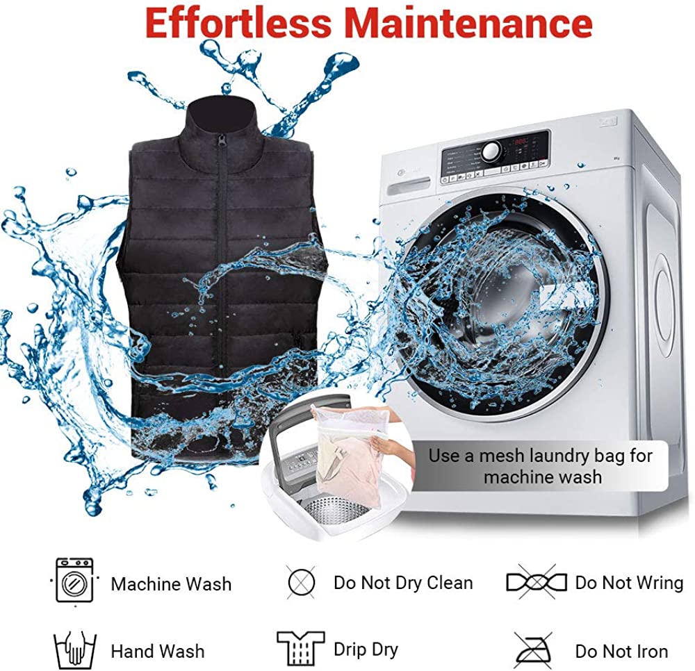 For a combination of functional comfort and quilted design, reach for the Sleeveless Quilted Heated Vest from Dr. Prepare, this unisex heated vest helps you stay cozy and warm. Operation: ※ Please use a portable battery pack (not included) with 2A or 2.4A USB output to power up this heated vest. ※ Step 1. Unzip the inner pocket and take out the USB cable. Step 2. Insert the USB cable into the USB output on the battery. Then push the Power Button on your battery pack to turn it on. The thermal switch on the vest (near your chest) now cycles through red, blue, and green light for once, indicating the heated vest is plugged in. Step 3. Long press the thermal switch for 2 seconds and it will flash red light. The heated vest will enter the AUTO Mode. In AUTO Mode, the temperature of your heated vest will regulate from High to Medium after the red light flashes for 5 minutes. Step 4. If you prefer a certain heating level to the AUTO mode, short press the thermal switch. Then you can adjust temperature settings from High, Medium to Low. The red light stands for high heat. The blue light indicates medium heat and the green light signals low heat. Step 5. Press and hold the thermal switch for 2 seconds to stop the heated vest from heating. Specifications: Name: Heated Vest Input: 5V / 1.9A Rated Wattage: 9.5W Outer Shell: 100% Polyester Filling: 100% Polyester Three Heating Levels: 131°F (High, Red Light), 122°F (Medium, Blue Light) 113°F (Low, Green Light)