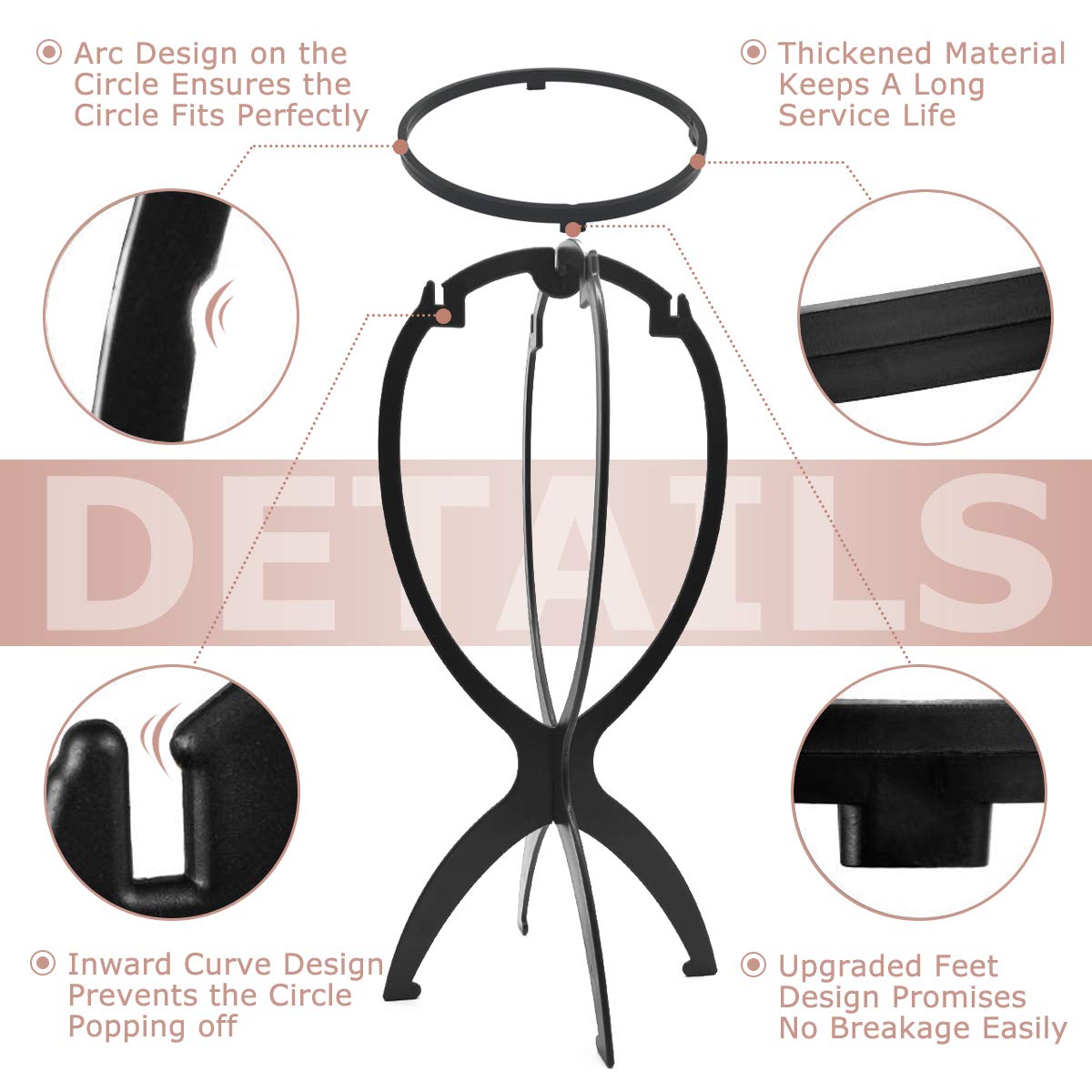 Dreamlover Wig Stand for Wigs, Portable Wig Head Stand for Women, 3 Pack