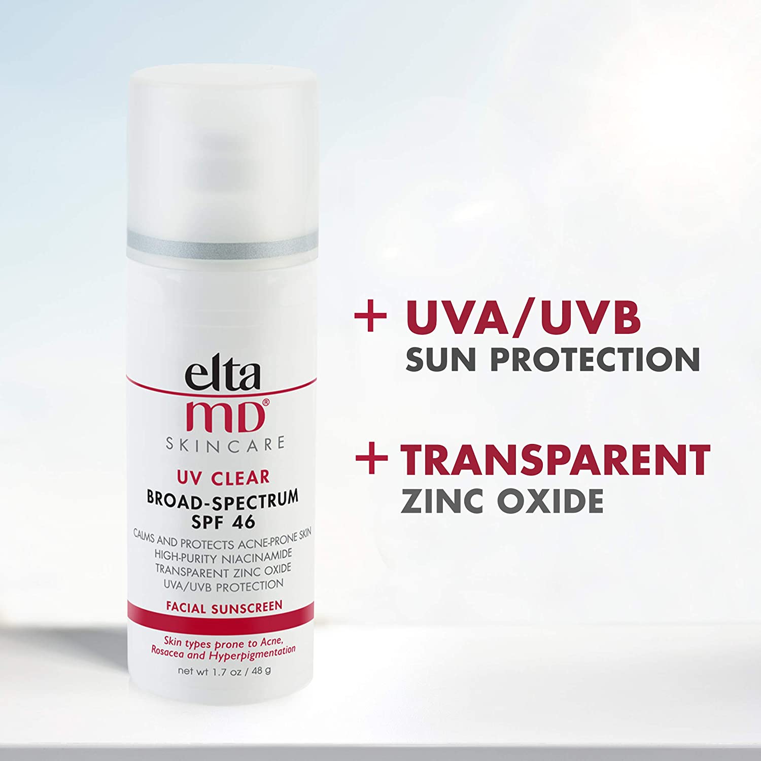 EltaMD UV Clear SPF 46 Face Sunscreen, Broad Spectrum Sunscreen for Sensitive Skin and Acne-Prone Skin, Oil-Free Mineral-Based Sunscreen Lotion with Zinc Oxide, 1.7 oz Pump