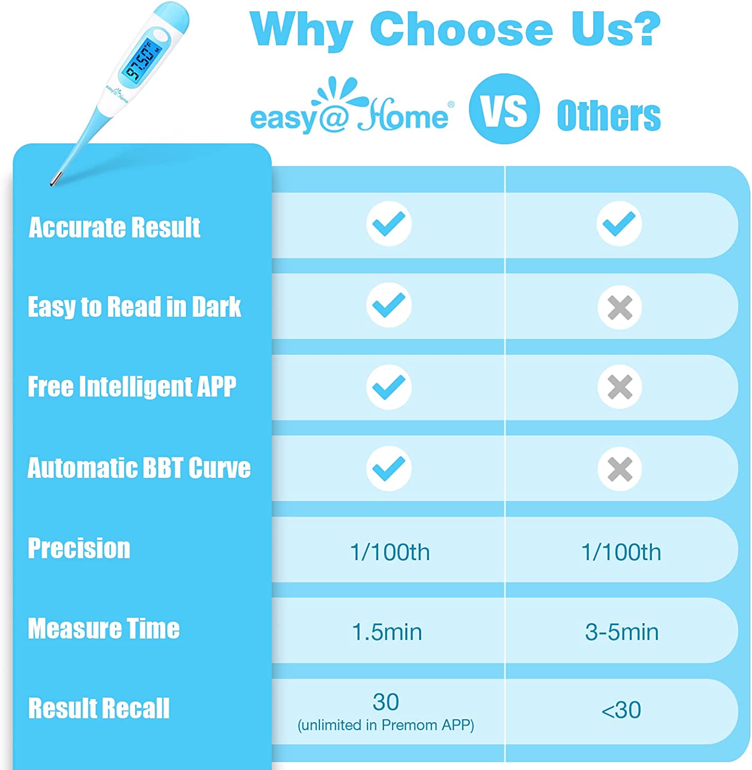 [email protected] Digital Basal Thermometer with Blue Backlight LCD Display, 1/100th Degree High Precision and Memory Recall, NOT Bluetooth Enabled, Upgraded EBT-100B(Blue)