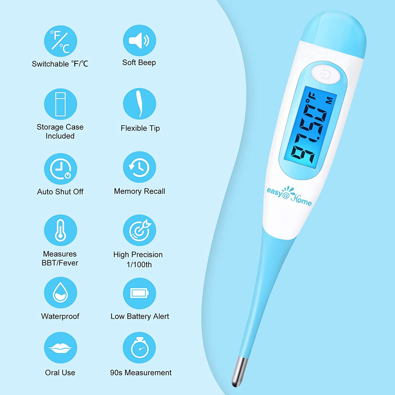 [email protected] Digital Basal Thermometer with Blue Backlight LCD Display, 1/100th Degree High Precision and Memory Recall, NOT Bluetooth Enabled, Upgraded EBT-100B(Blue)