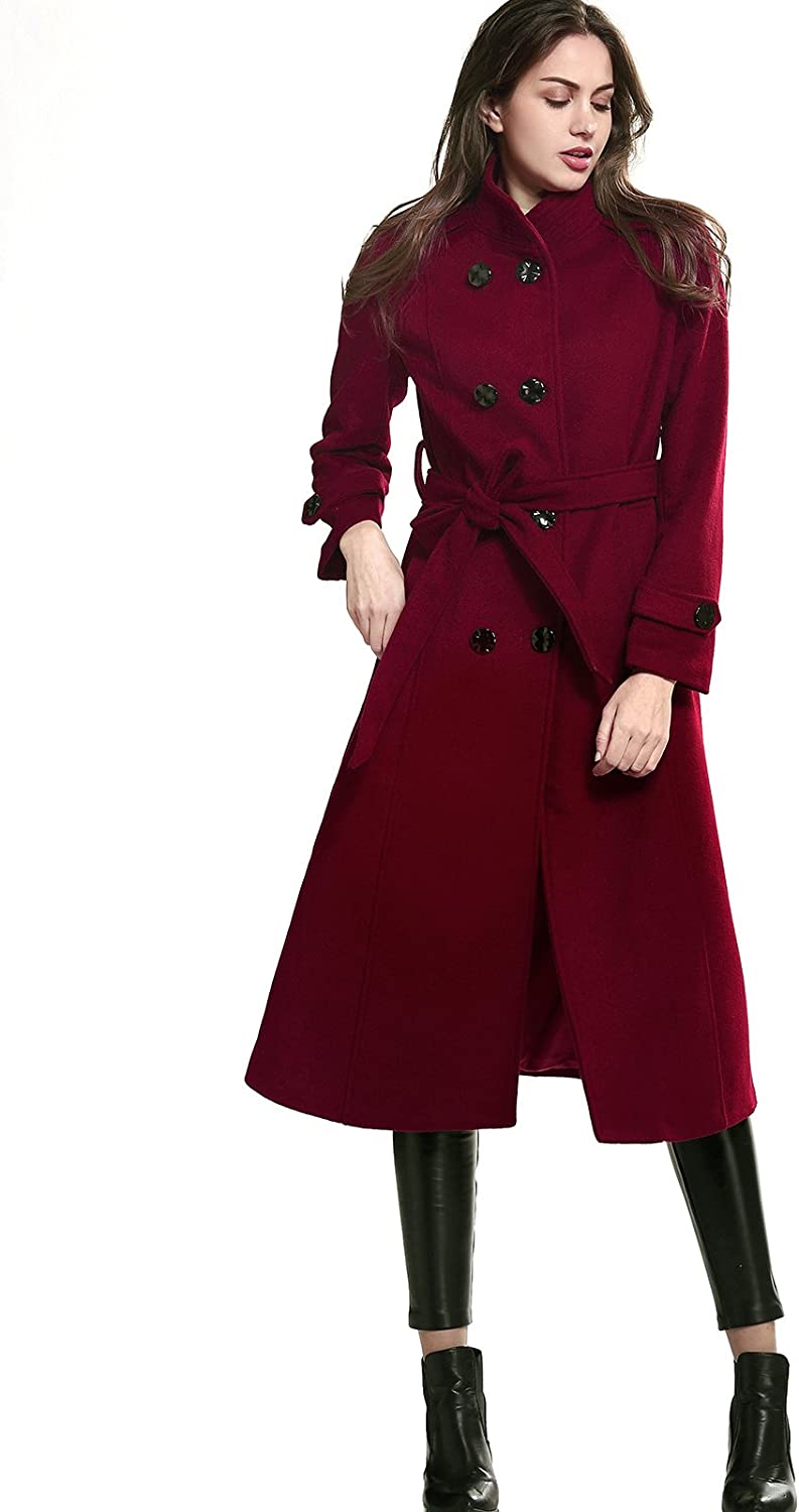 Escalier Women's Wool Trench Coat Winter Double-Breasted Jacket with Belts