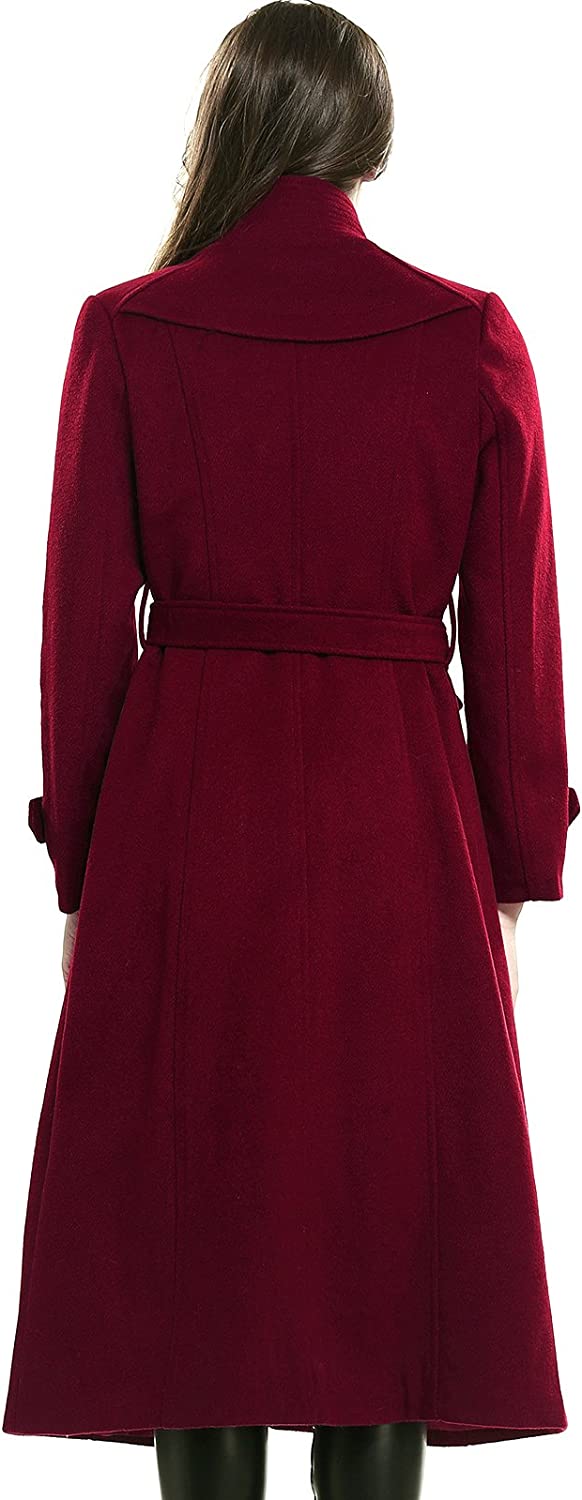 Escalier Women's Wool Trench Coat Winter Double-Breasted Jacket with Belts