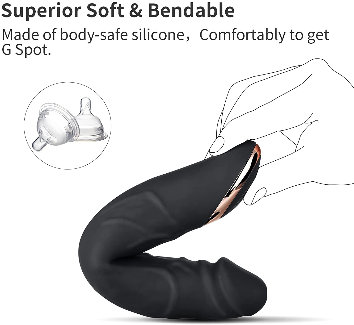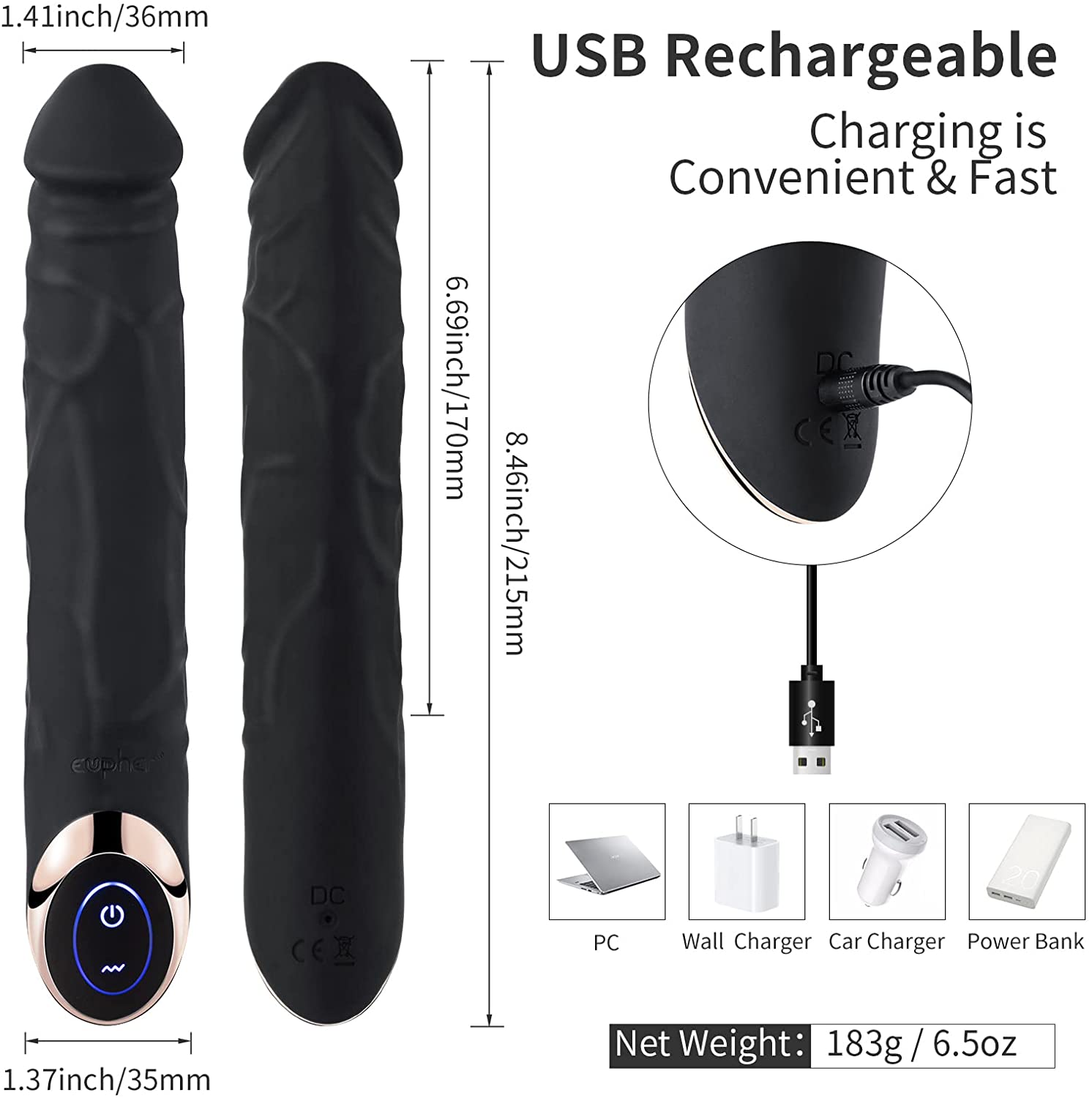 Eupher 8.5 Inch Rechargeable G Spot Dildo Vibrator,Realistic Dildo Vibrating Machine with 10 Vibrations,Quiet & Bendable Vaginal Clitoris Anal Stimulation Adult Sex Toys for Women or Couple (Black)
