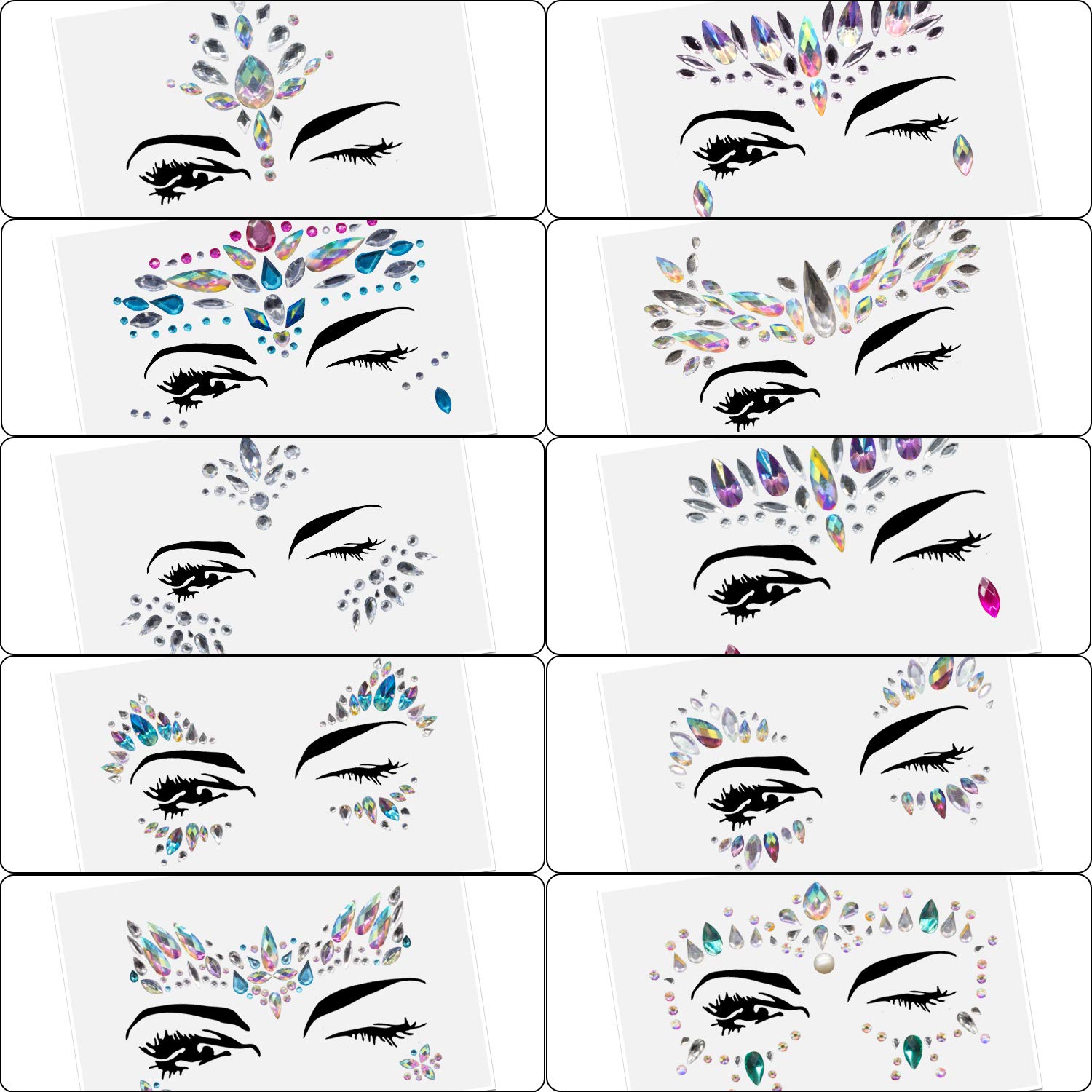 Face Gems, 10 Sets Mermaid Face Jewels Festival Face Gems Rhinestones Rave Eyes Body Bindi Temporary Stickers Crystal Face Stickers Decorations Fit for Festival Party(10 Sets collection)