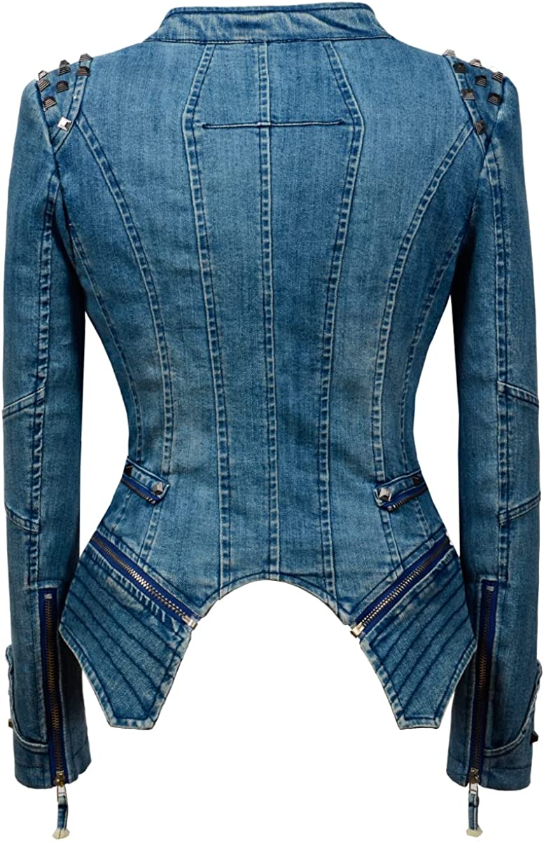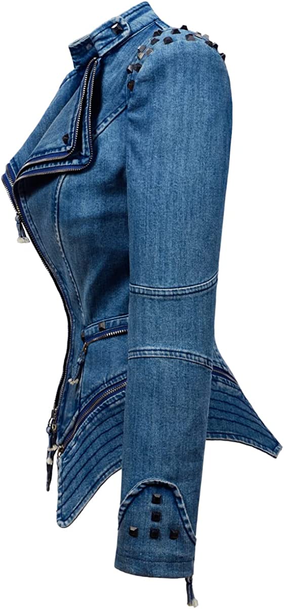 Fashion SX Womens Rivet Faux Leather Jacket Zipper Moto Biker Denim coat Motorcycle Outwear