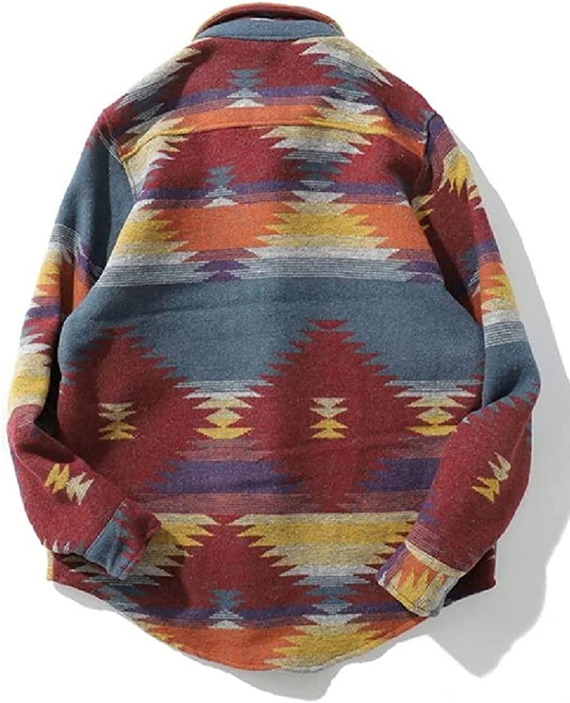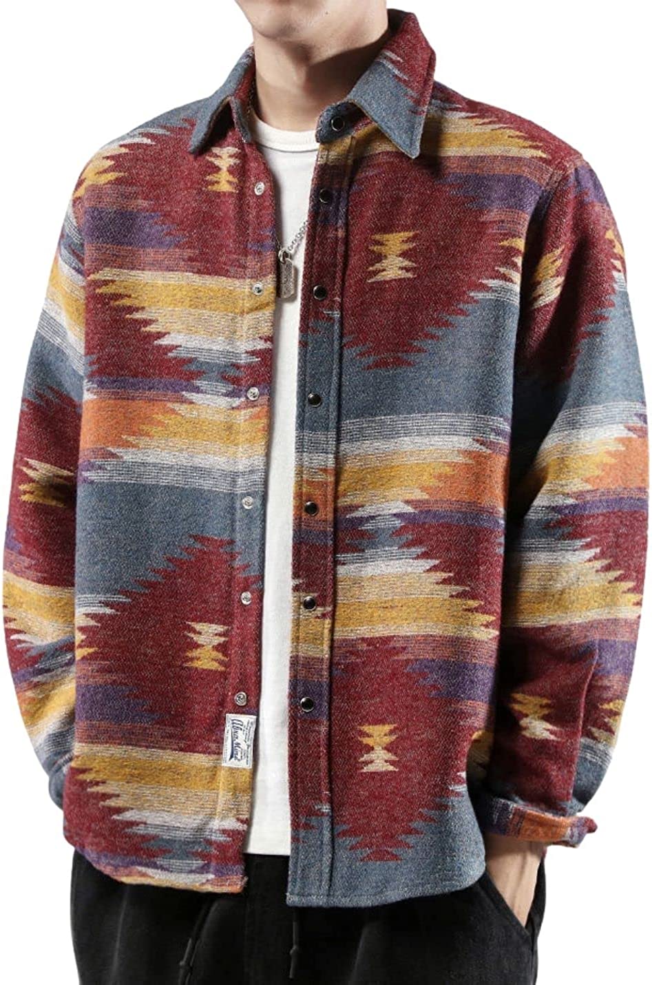 FindThy Men’s Brushed Flannel Shirts Ethnic Aztec Print Button Up Lapel Tribal Shirt Jacket Shacket