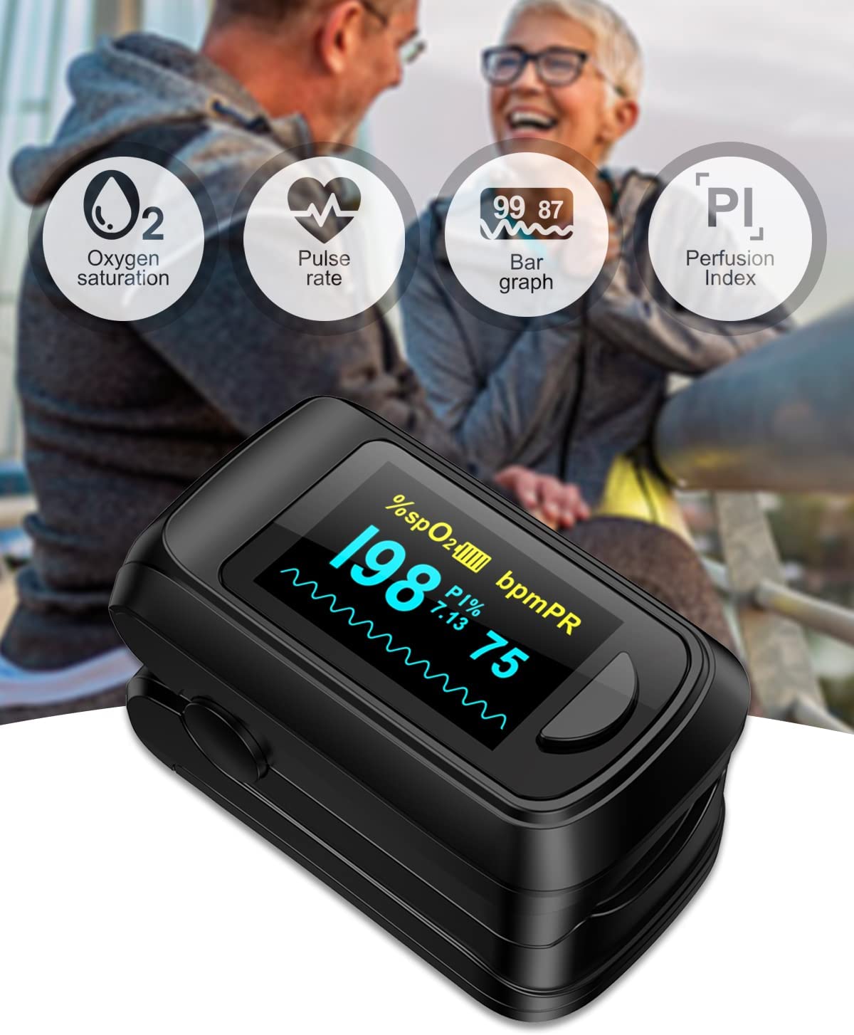 Fingertip Pulse Oximeter Blood Oxygen Saturation Monitor, Heart Rate and Fast Spo2 Reading Oxygen Meter with OLED Screen AAA Batteries