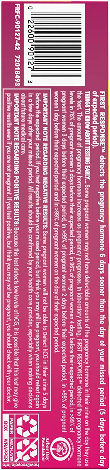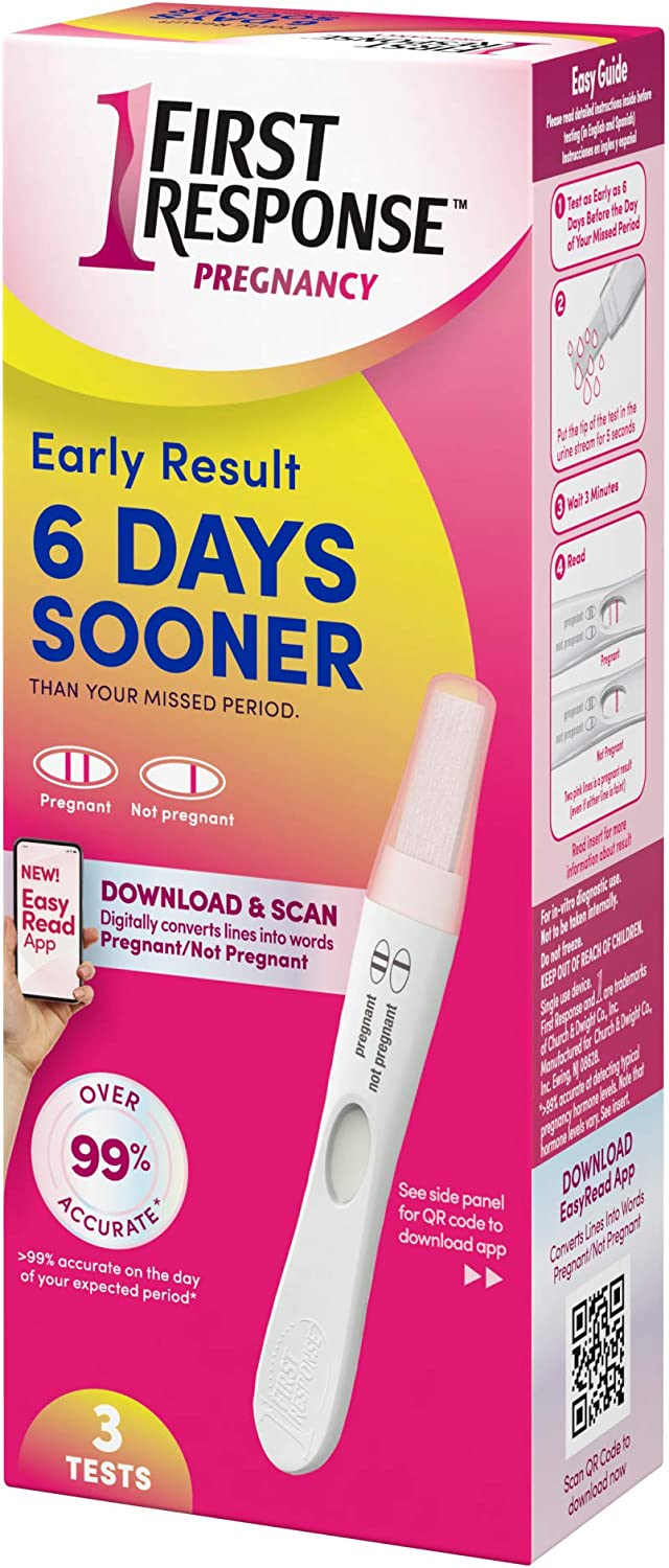 Featuring First-to-Detect Technology, this First Response pregnancy test is sensitive enough to capture scant amounts of the pregnancy hormone to give you results 6 days sooner than your missed period*. The Early Result test is over 99 accurate* and compatible with the free EasyRead App, that instantly converts your pregnancy test lines into “Pregnant” or “Not Pregnant” results.
