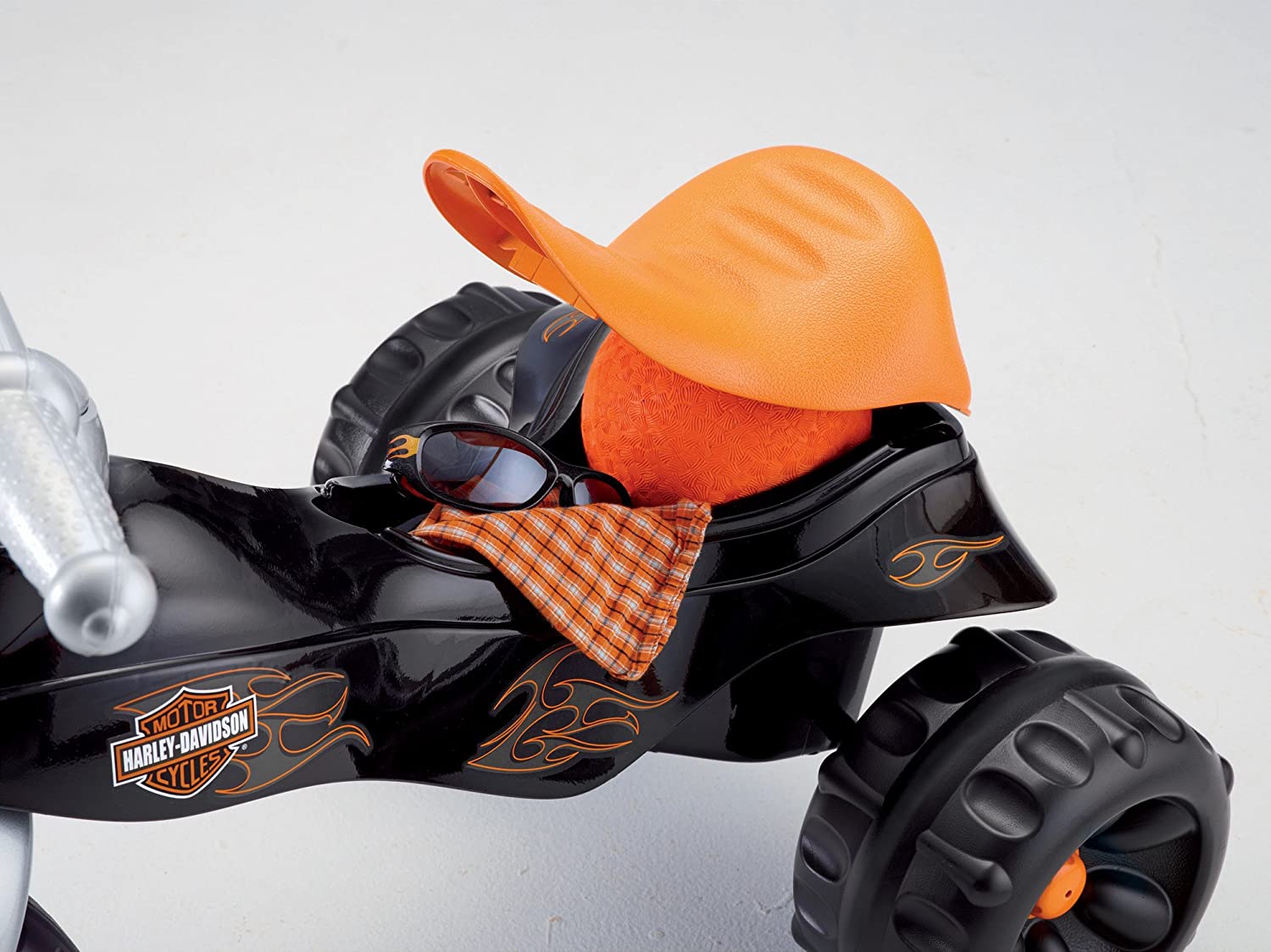 Kids will love cruising along on this Harley-Davidson styled tricycle with durable and rugged tires that help take them wherever they want to go. Cool features like the secret storage compartment under the comfort-ride seat add to the fun! And the wide, stable wheel base, easy-grip handlebars and big foot pedals help even the littlest riders get rolling!