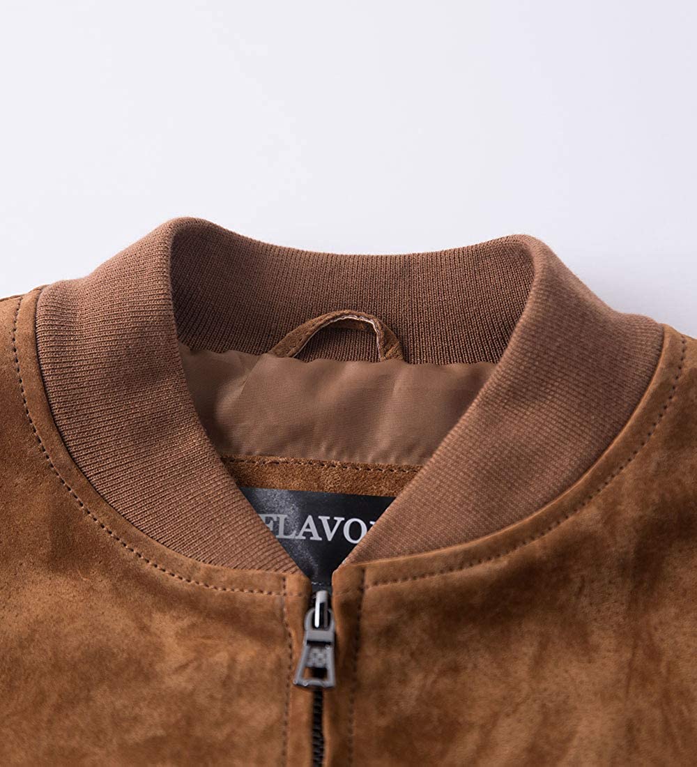 FLAVOR Men's Leather Baseball Bomber Jacket Vintage Suede Pigskin