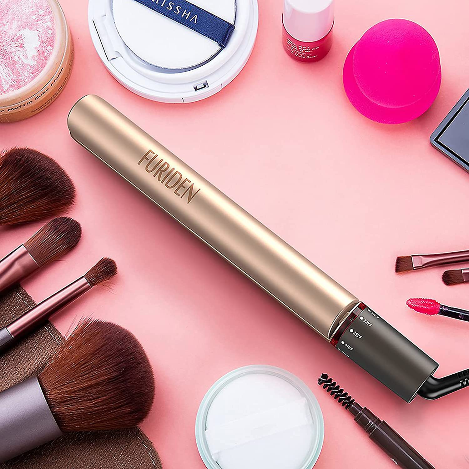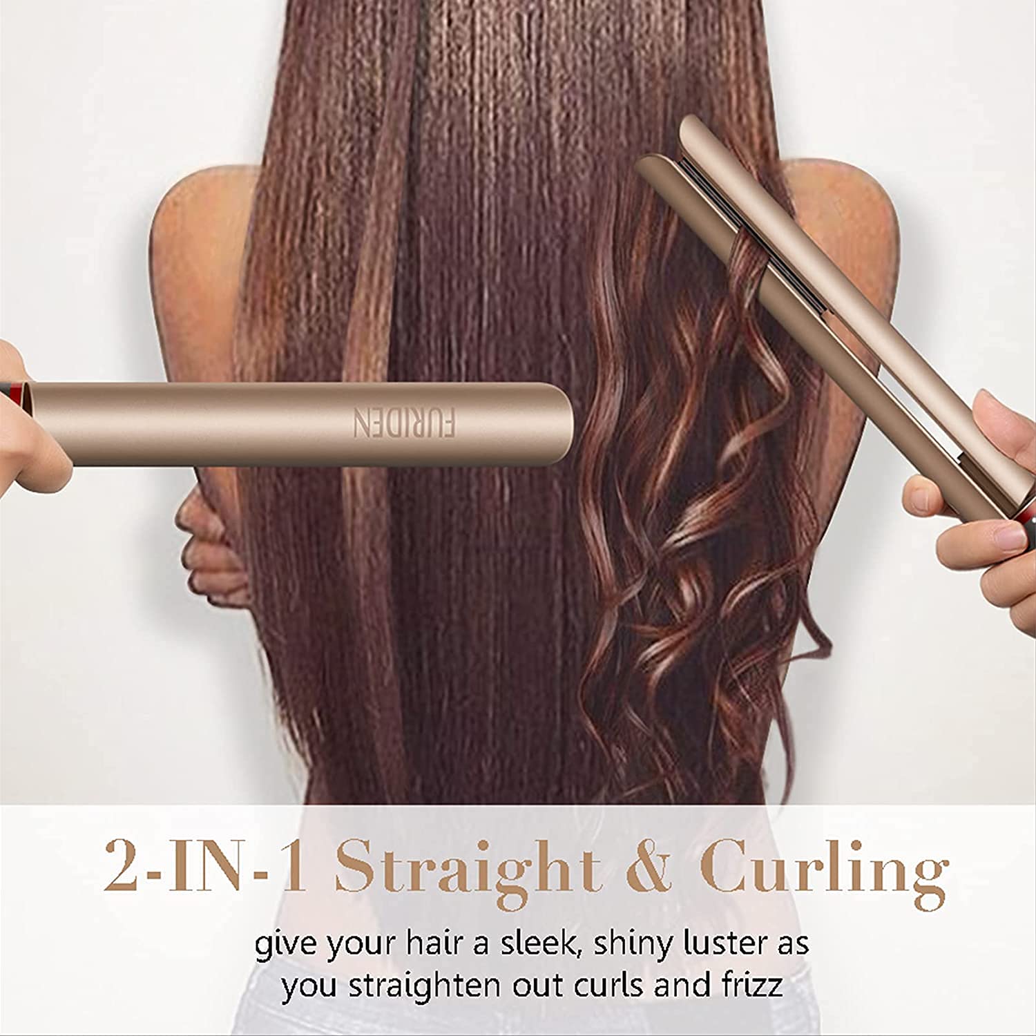 FURIDEN Hair Straightener, Flat Iron Hair Straightener, Hair Straightener and Curler 2 in 1, Flat Iron Curling Iron in One, Curling Straightening Iron Combo, Round Flat Iron