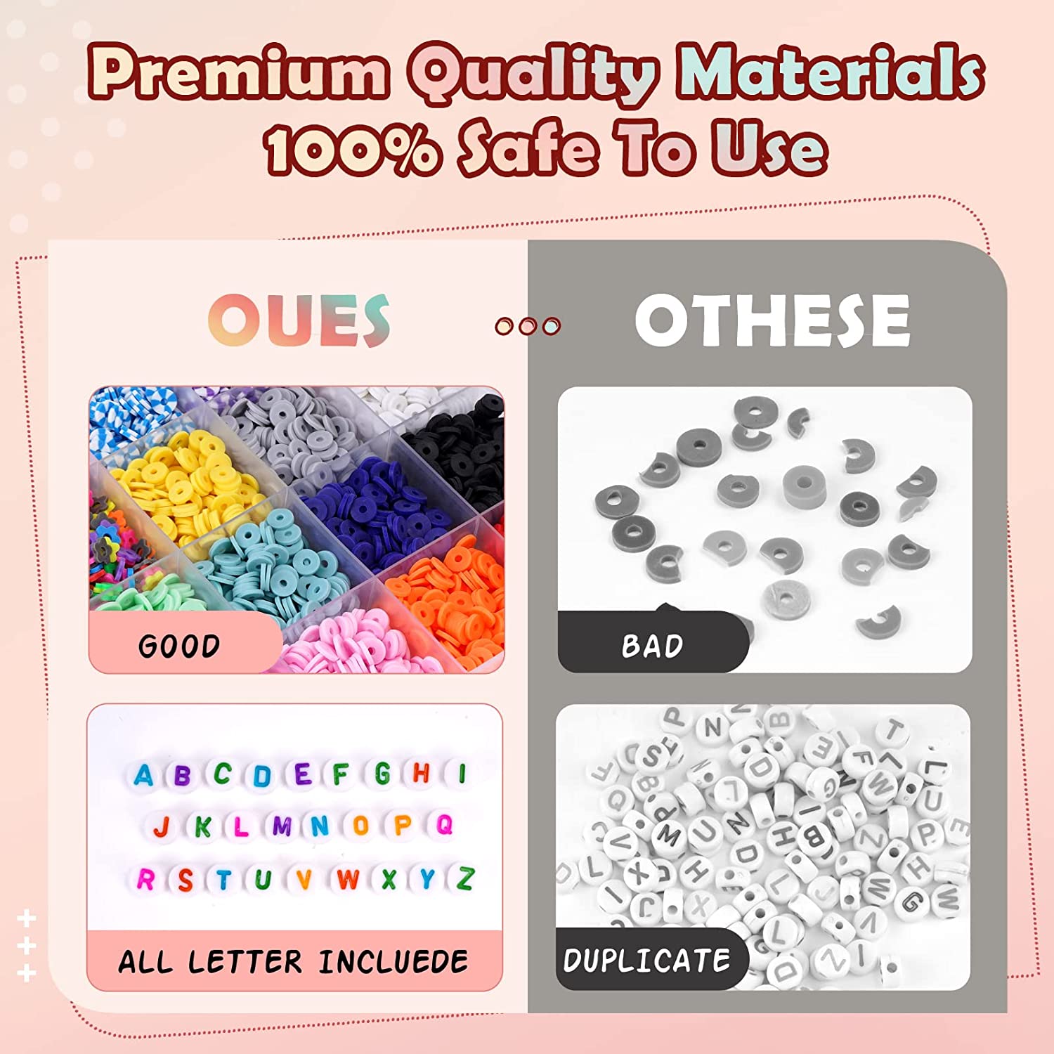 FZIIVQU Clay Heishi Beads Kit with Smiley Face Beads for Bracelets Making 5280+ Polymer Preppy Flat Clay Beads for Jewelry Making Set Lnclude UV Letter Beads & Fruit Animal Gold Star Spacer Beads etc