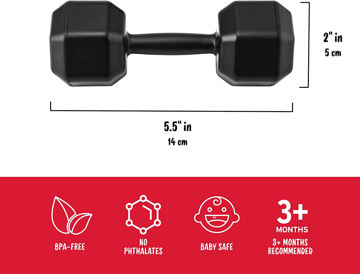 Buff Baby turns Junior into a bench-pressin’ body-builder! Your little one's curiosity will be piqued by the gentle rattle sound and natural hand-grips, while your sense of irony will be satisfied by watching Junior do 3 sets of 10. Sowork it, baby! 5 1/2" X 2", No phthalates, no BPA, safe for baby. Clear gift box packaging. Design by Diana change