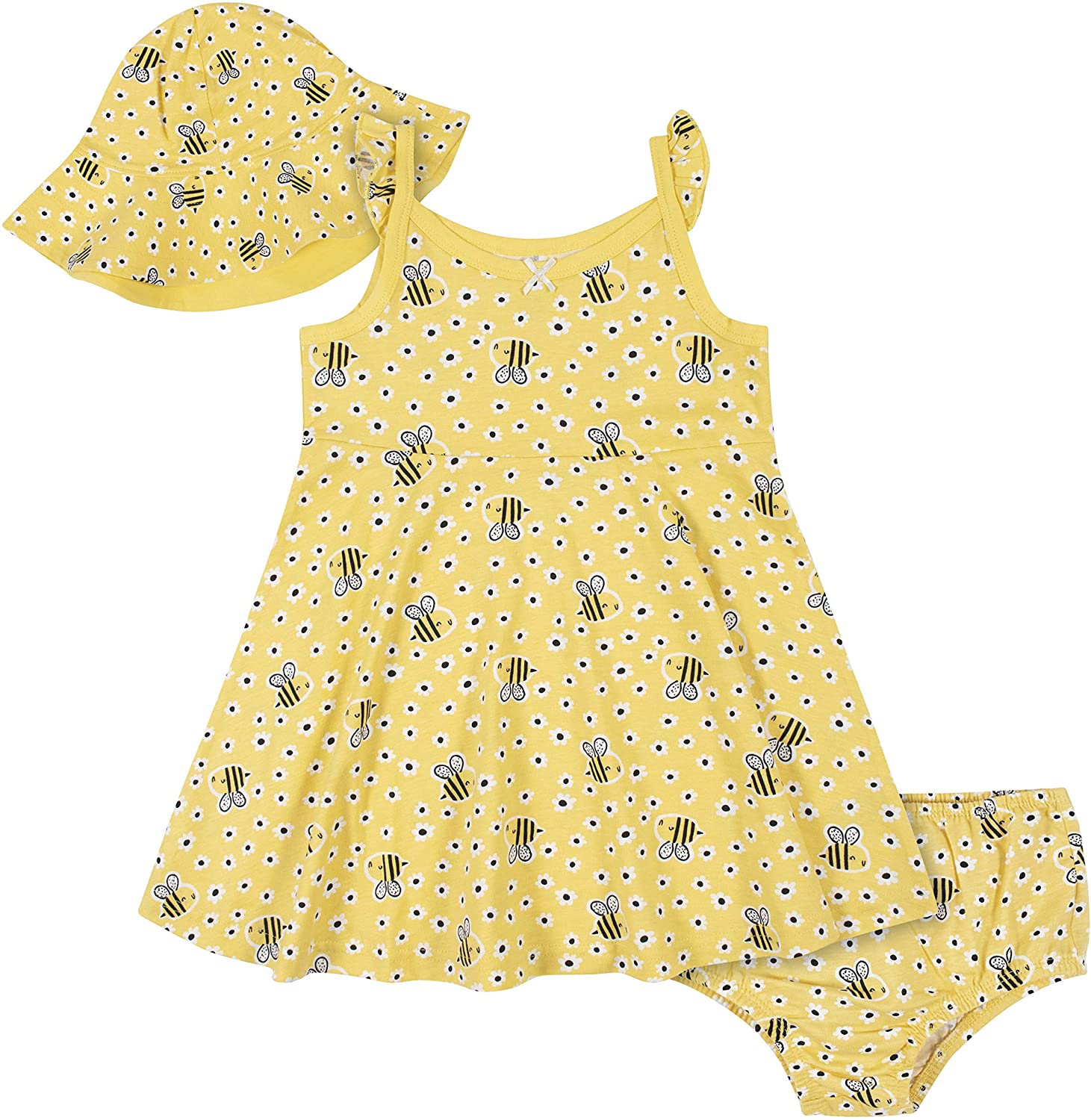 Gerber Baby Girls' 3-Piece Sundress, Diaper Cover and Hat Set