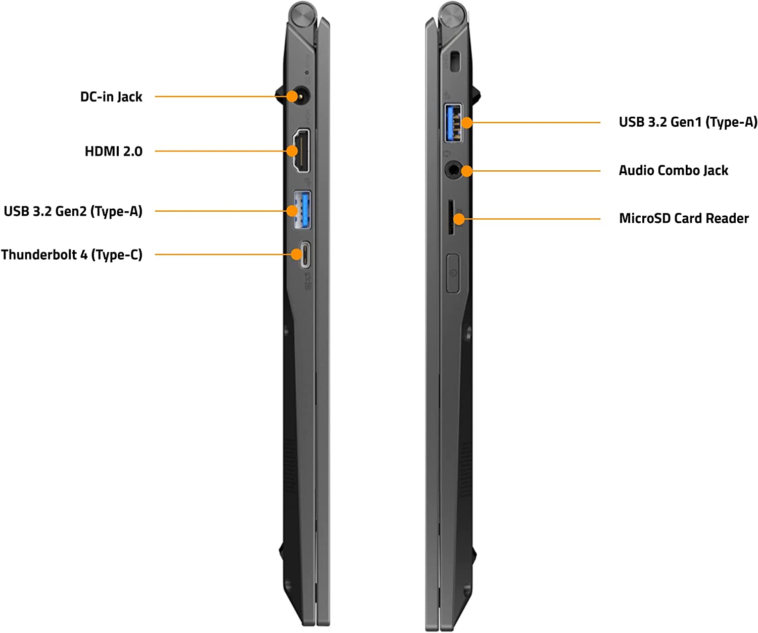 Intel Iris Xe Graphics, 11th Gen Intel Core i5-1155G7, 16GB DDR4 RAM, 512GB SSD, 14.0" Thin Bezel FHD 1920x1080 IPS-level Display, Intel WiFi 6 AX201, Bluetooth V5.2, Dual-Array Microphone, DTS: X Ultra, Windows 11, 1x USB 3.2 Gen1 (Type-A), 1x USB 3.2 Gen2, (Type-A), 1x Thunderbolt 4 (Type-C), 1x HDMI 2.0, 1x Audio Combo Jack, 1x MicroSD Card Reader, 1x DC-in Jack