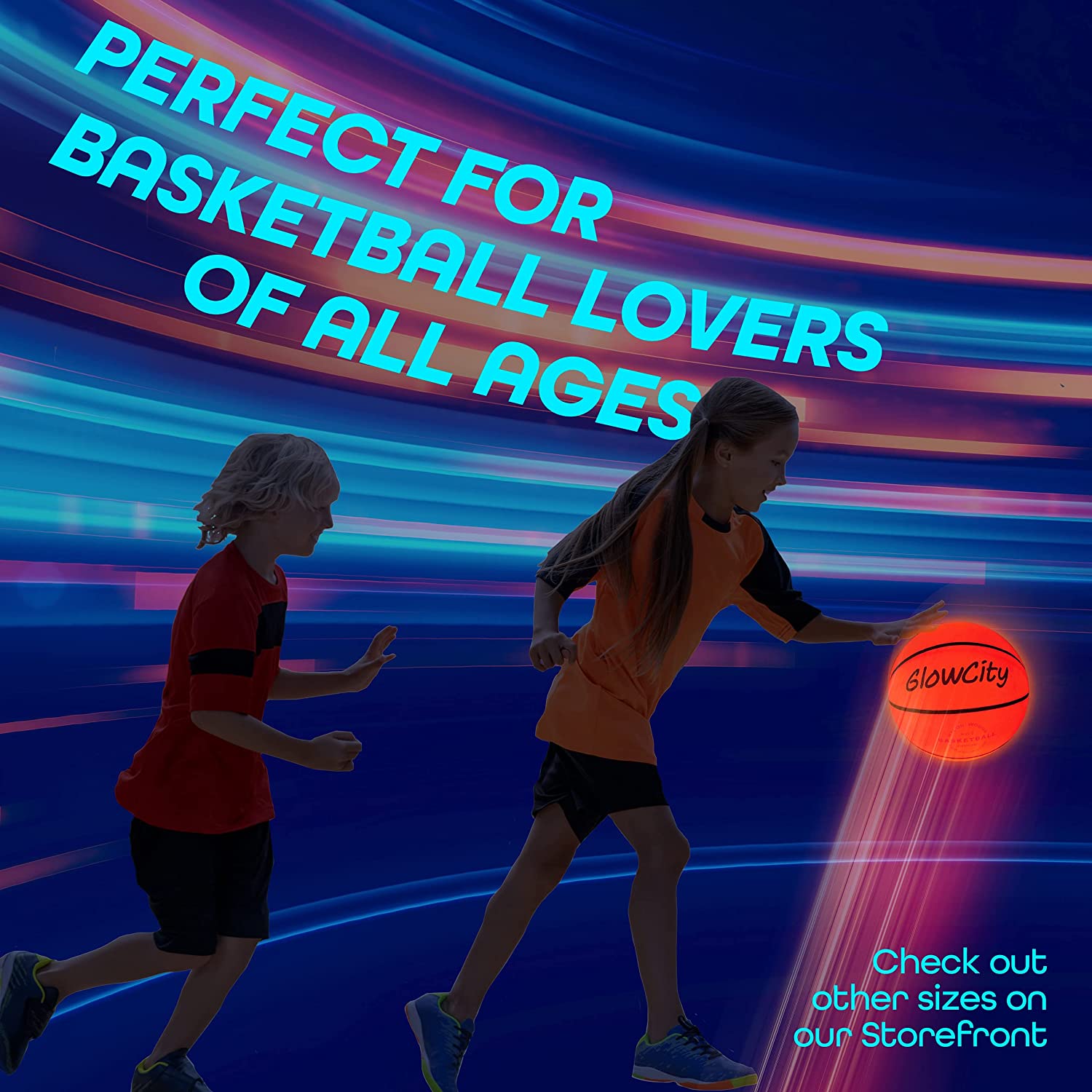 GlowCity Glow in The Dark Basketball - Light Up, Indoor or Outdoor Basketballs with 2 LED Lights and Pre-Installed Batteries